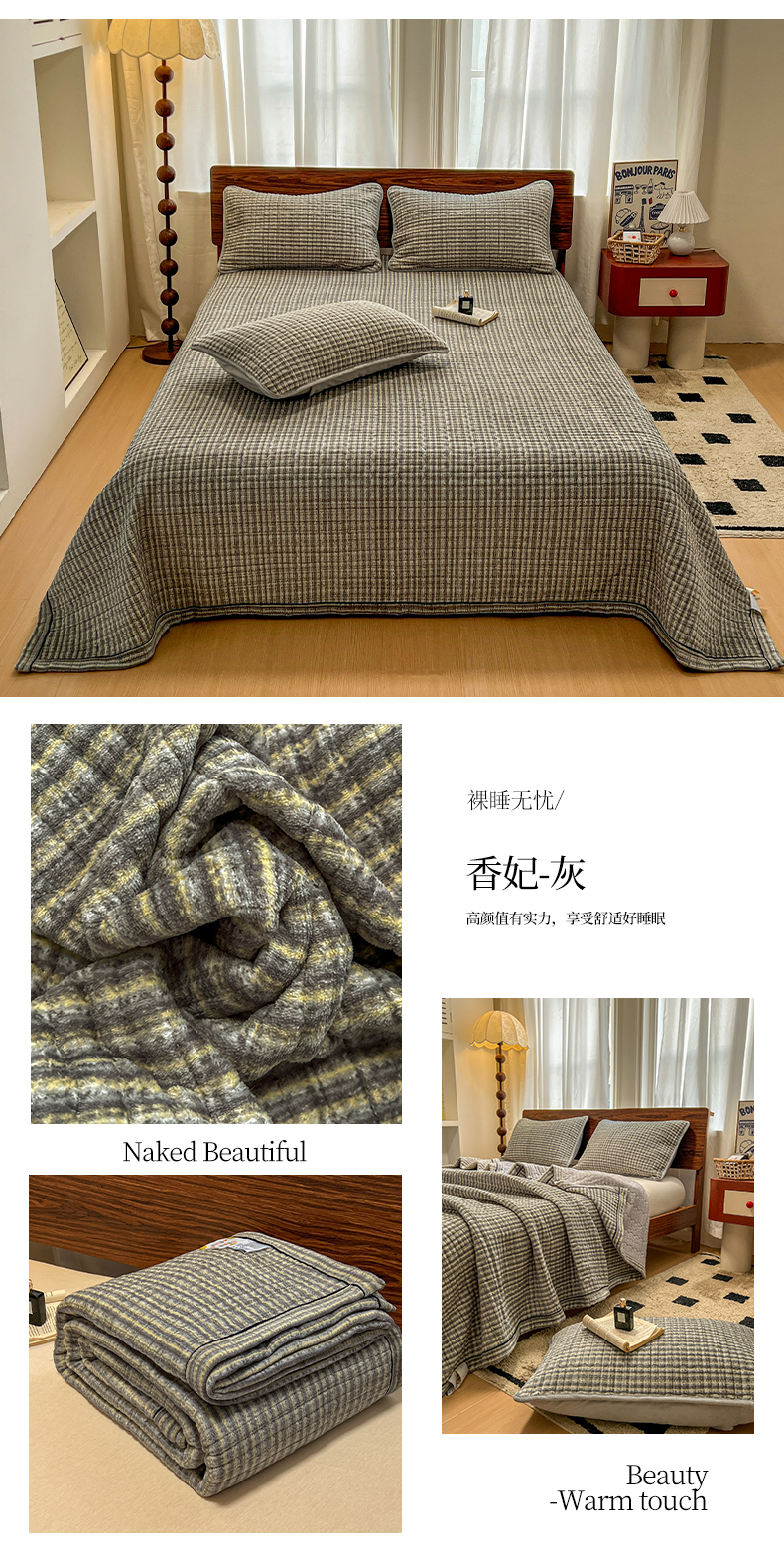 • 91家纺网 家纺一手货源 找家纺 芷卧 2025新款小香风牛奶绒床盖三件套 香妃-灰