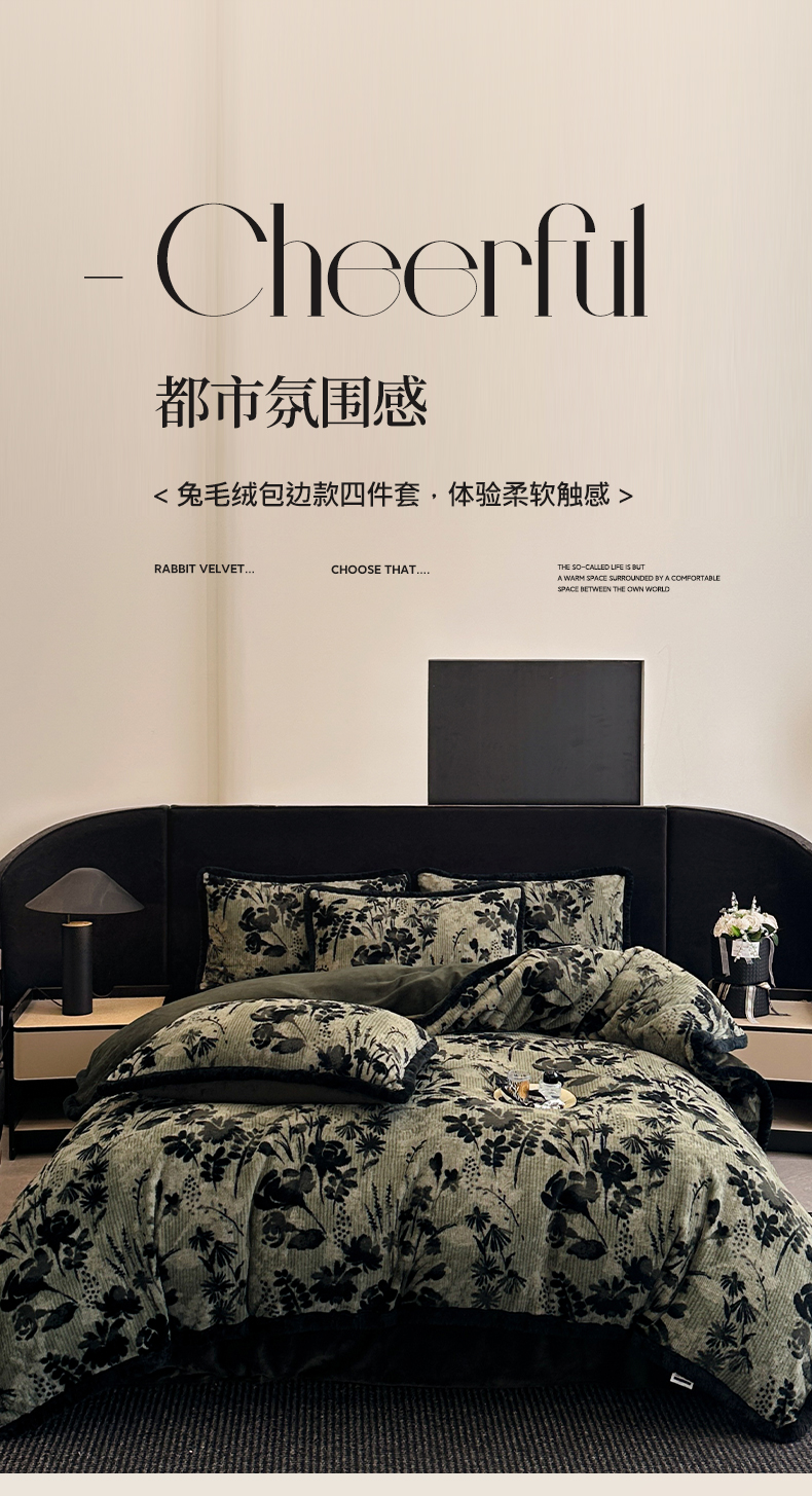 民新家纺 2025新款兔毛绒包边款四件套 暗香