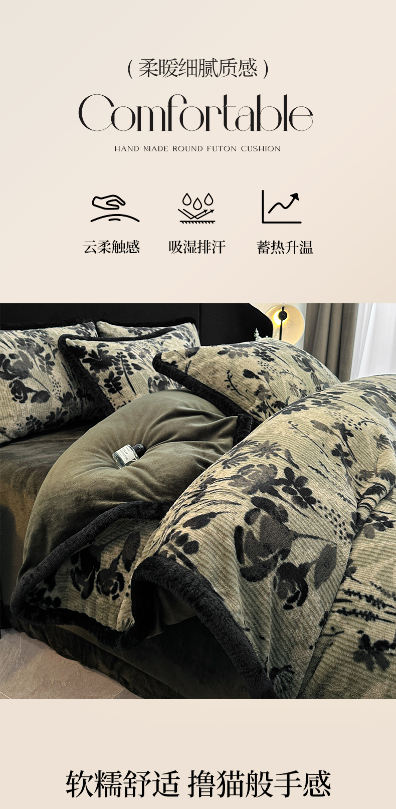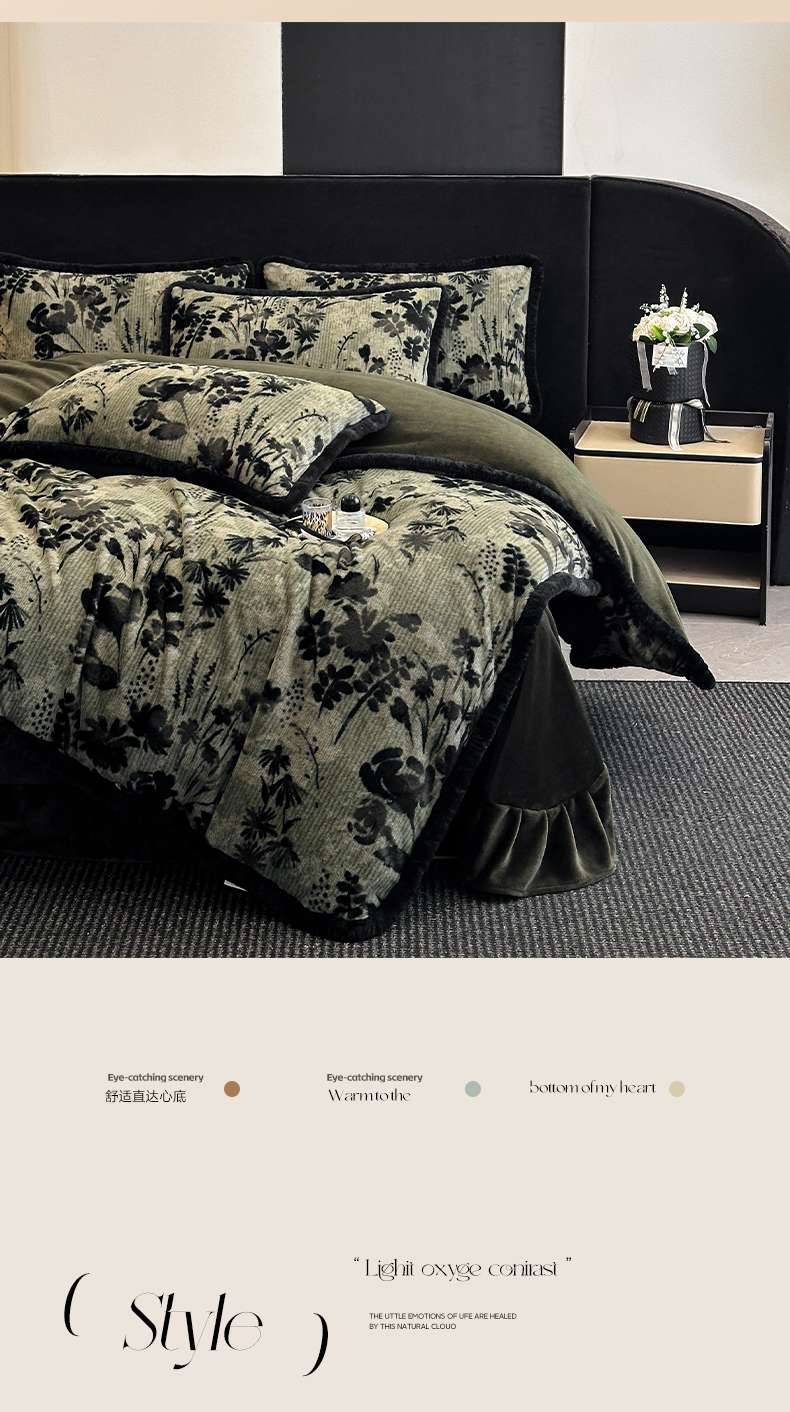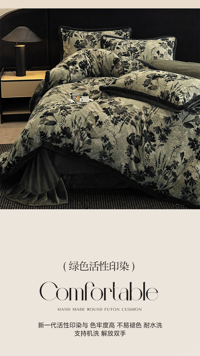 商品名称:民新家纺 2025新款兔毛绒包边款四件套 暗香