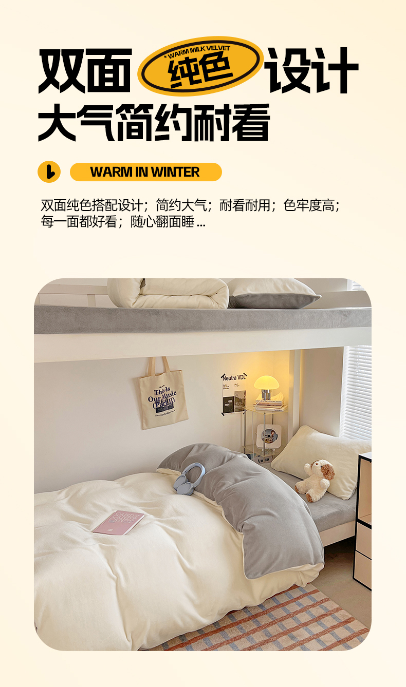 当前位置: 91家纺网 > 商品网购 > 床品套件 > 三件套 > 优卡迪家纺馆 2025新款牛奶绒纯色双拼宿舍床三件套 魅紫银灰