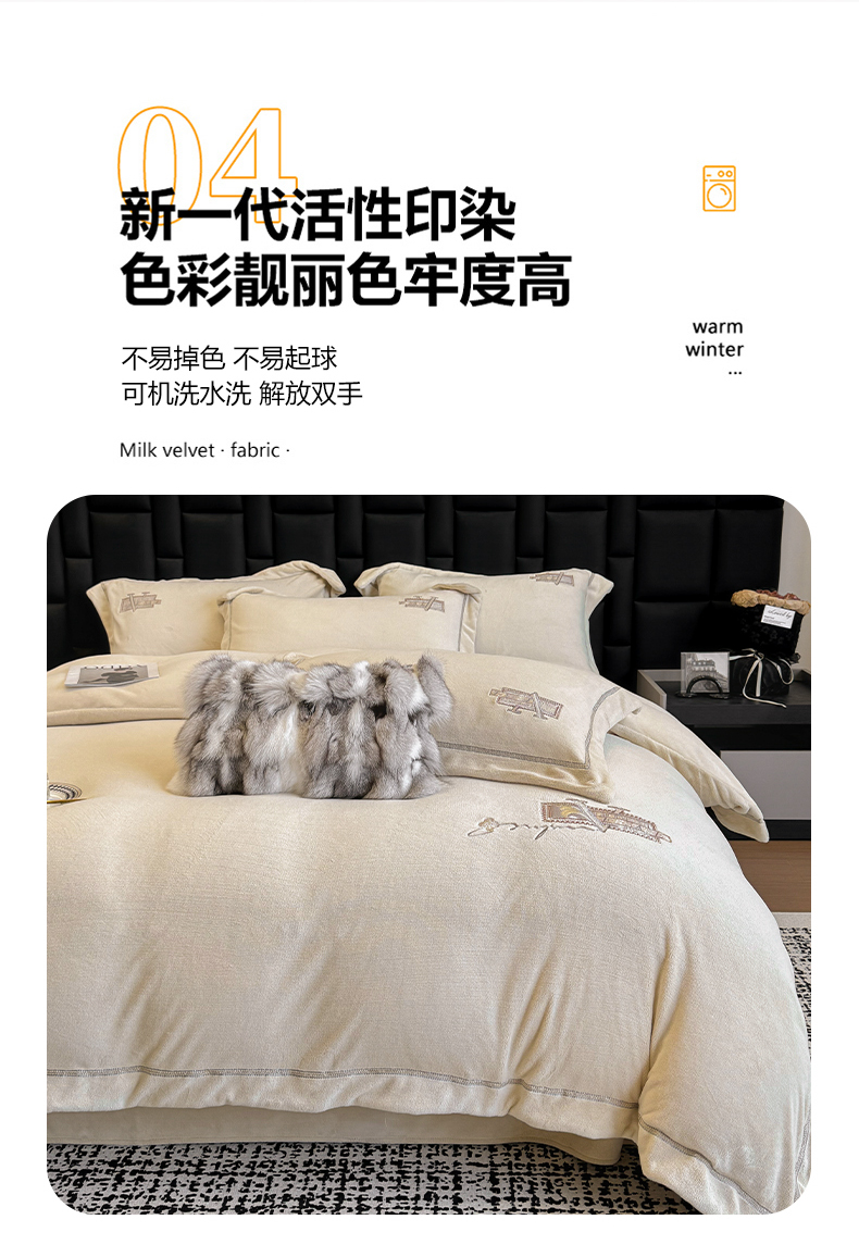 商品名称:丞音家纺 2025新款A类母婴级230克全消光牛奶绒轻奢刺绣四件套秋冬珊瑚绒加厚保暖绣花宝宝绒床单被套婴儿绒床 塞维尔-杏仁色