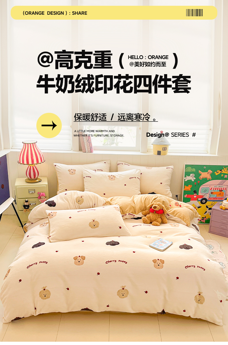 当前位置: 91家纺网 > 商品网购 > 床品套件 > 四件套 > 牛奶绒四件套 > 佳汐蓝家纺 2025新款190克高克重牛奶绒印花四件套 精灵仔-米+香槟