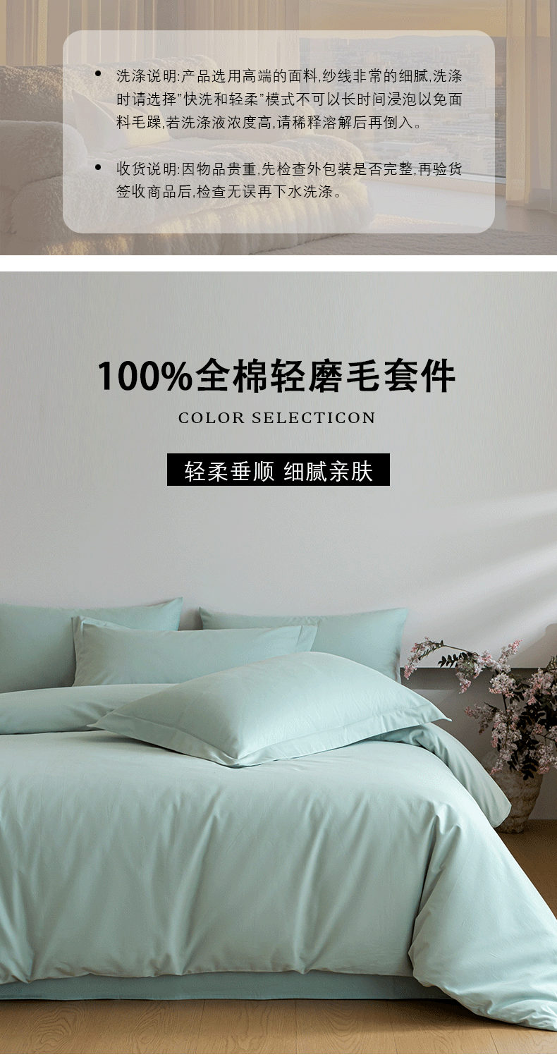 当前位置: 91家纺网 > 商品网购 > 床品套件 > 四件套 > 全棉普通四件套 > 618家纺 2025新款全棉100支磨毛单品四件套系列-四件套 奶油绿