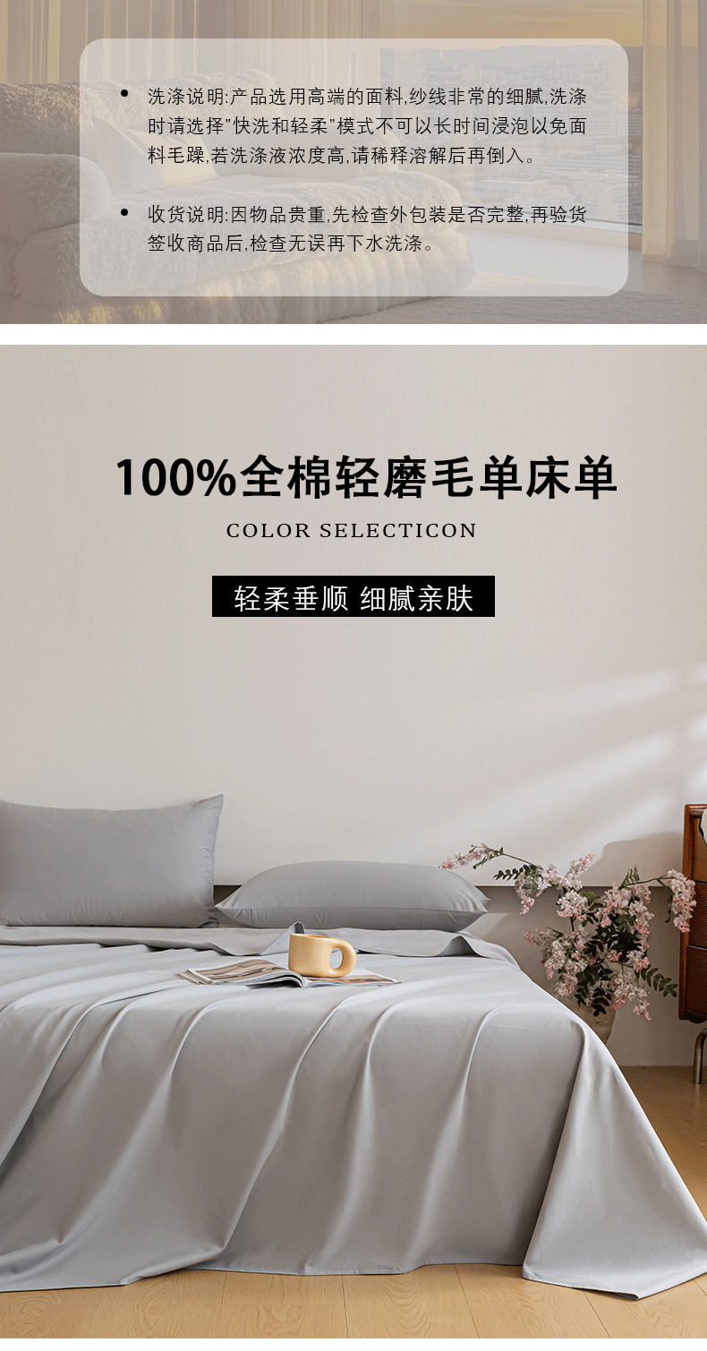 商品名称:618家纺 2025新款全棉100支磨毛单品四件套系列-单床单 火山灰