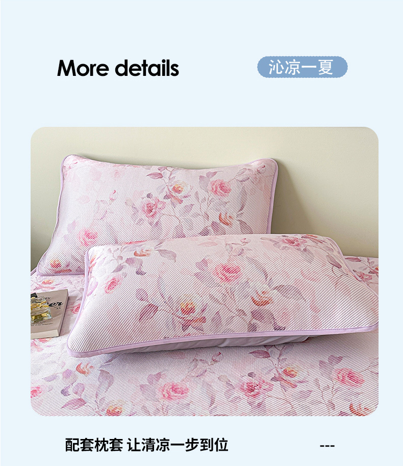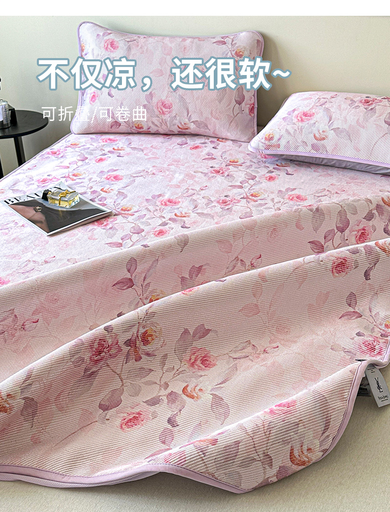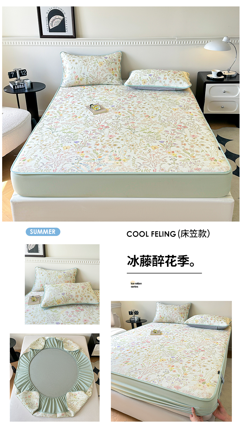 商品名称:宜代光年 2025新款数码印花冰藤席 床笠 冰藤牡丹 咖