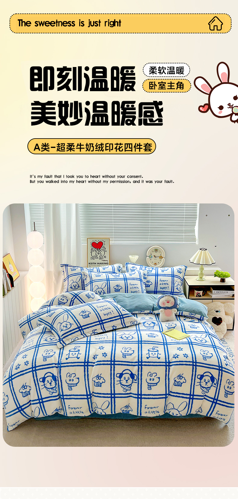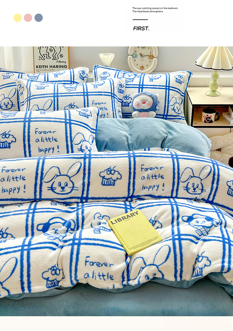 当前位置: 91家纺网 > 商品网购 > 床品套件 > 四件套 > 牛奶绒四件套 > 简一 2025新款小清新牛奶绒印花四件套-卡通系列派对乐园