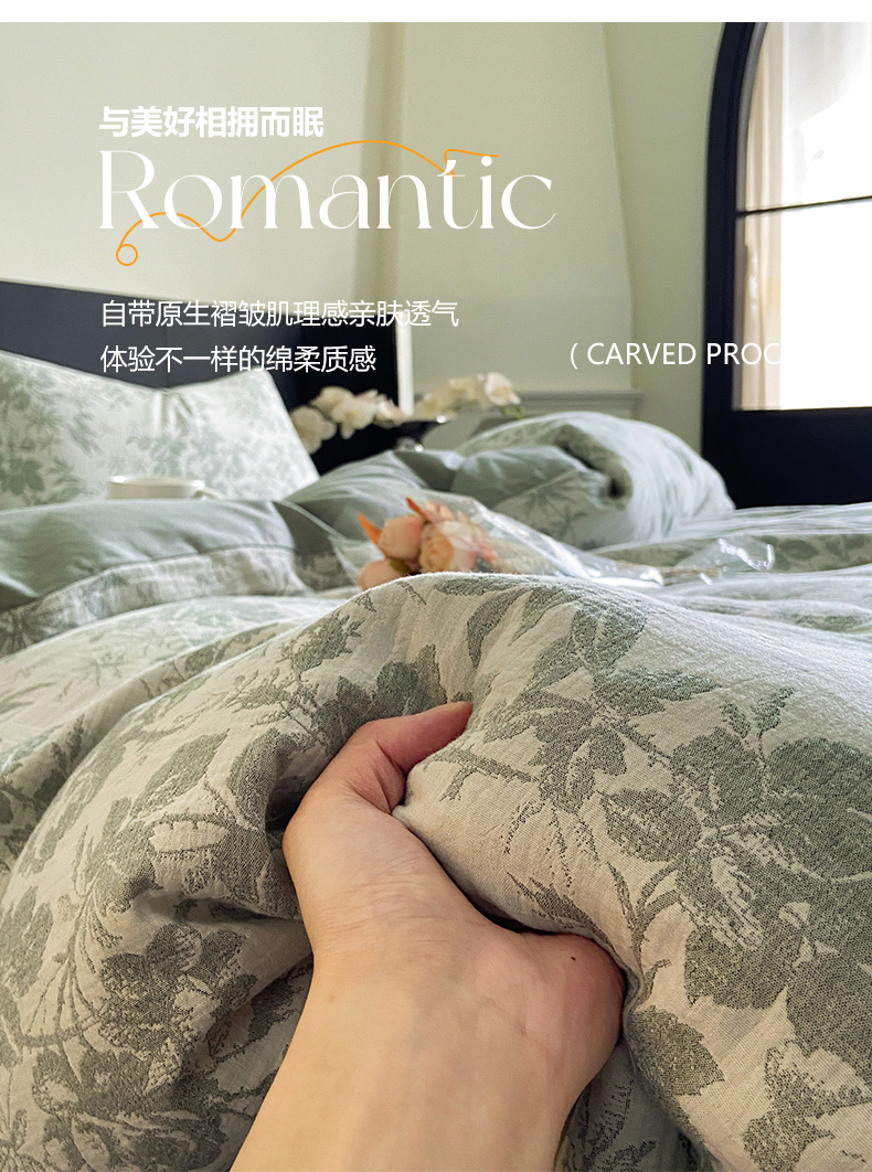商品名称:宜代光年 2025新款色织水洗棉提花四件套(第一批) 繁花-绿