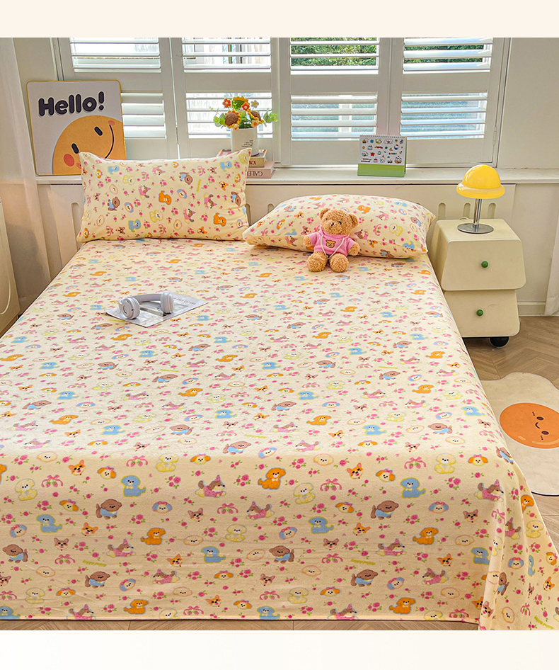 爱屋及屋 2025新款牛奶绒印花床单 萌宠派对