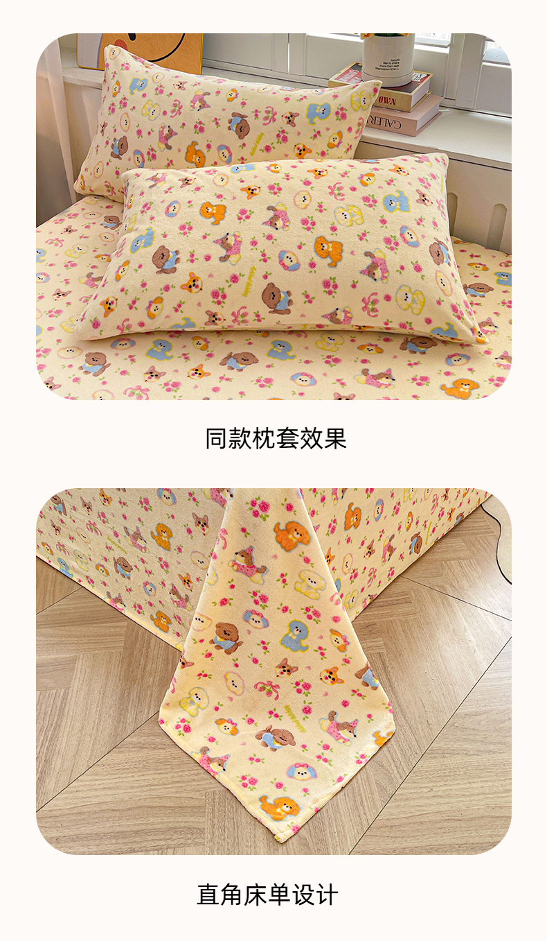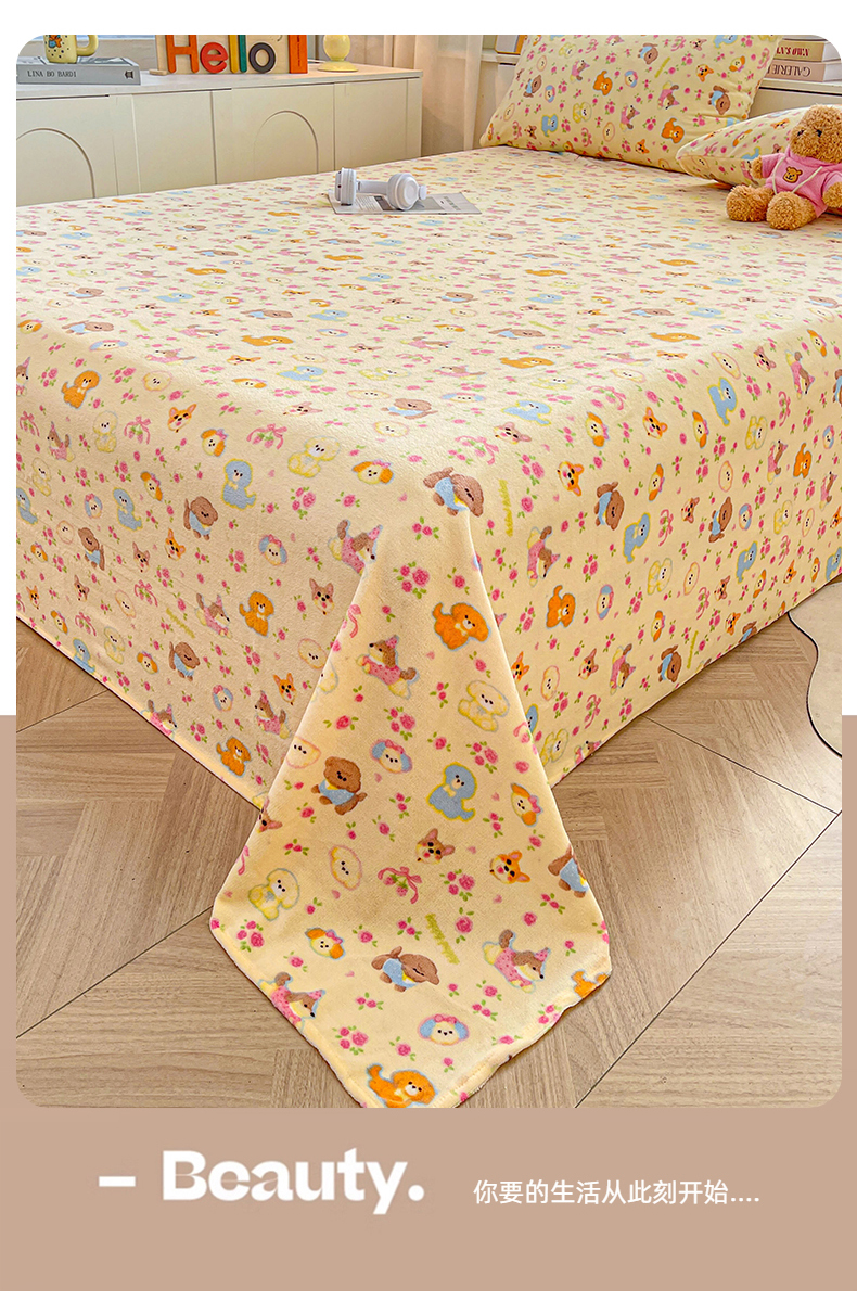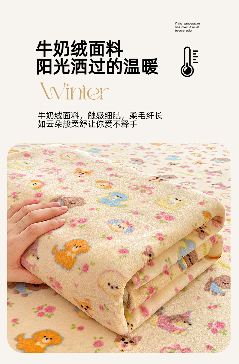 • 91家纺网 家纺一手货源 找家纺 爱屋及屋 2025新款牛奶绒印花床单 萌宠派对