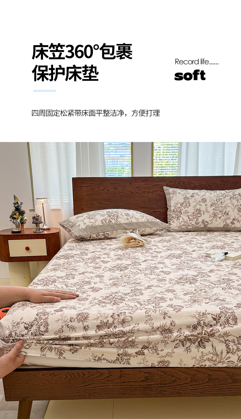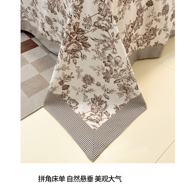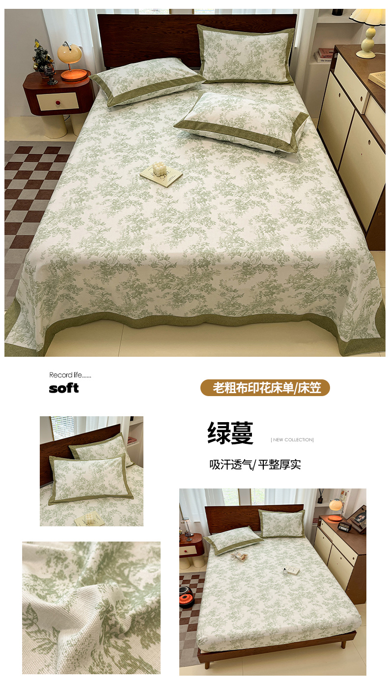 商品名称:宜代光年 2025新款全棉老粗布数码印花拼角工艺床单床笠 叠拍