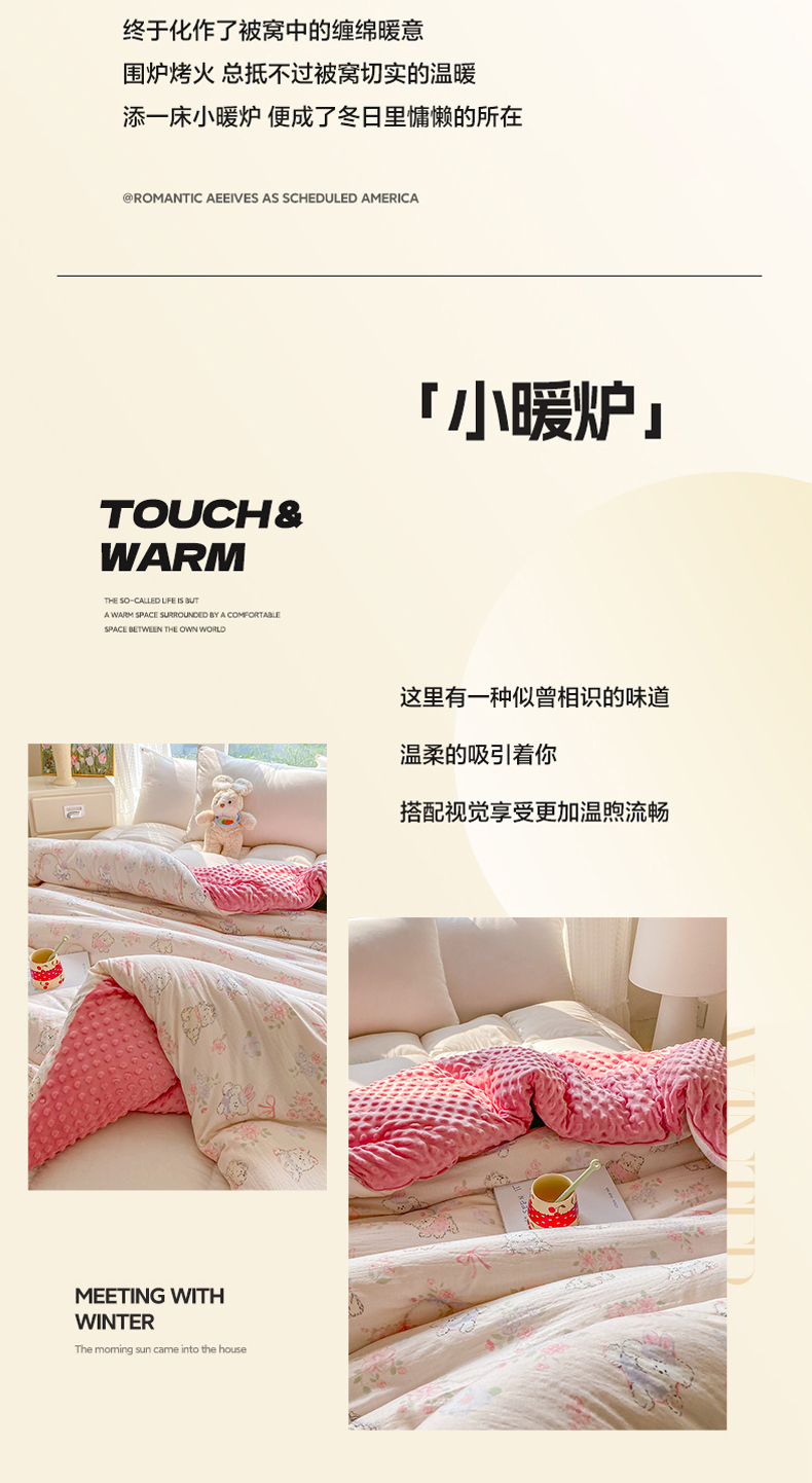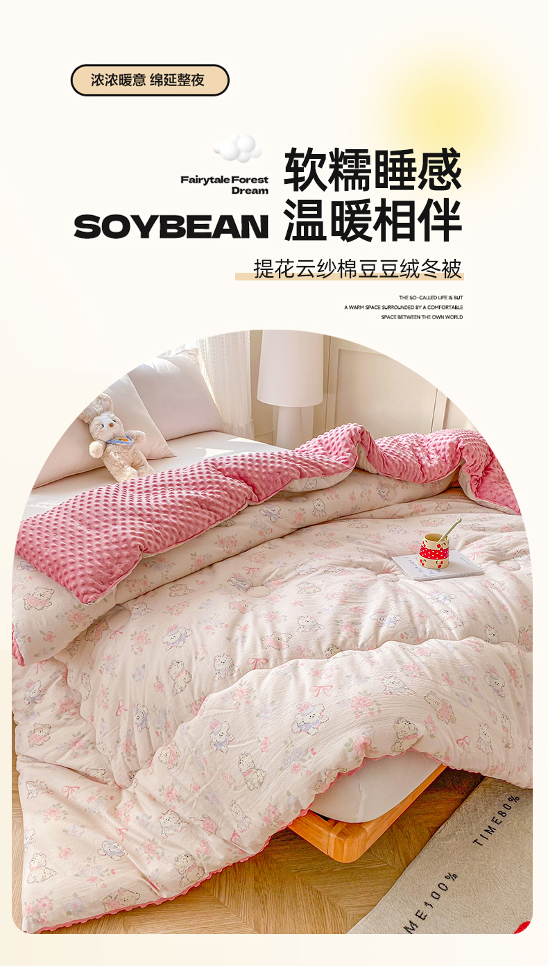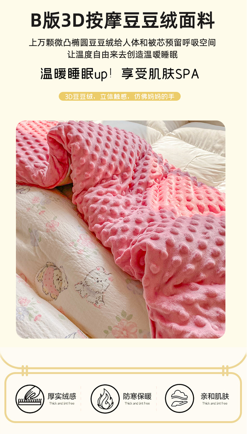 商品名称:美宜家 2025新款豆豆绒冬被子皱皱棉提花春秋被芯豆豆被 甜蜜蜜
