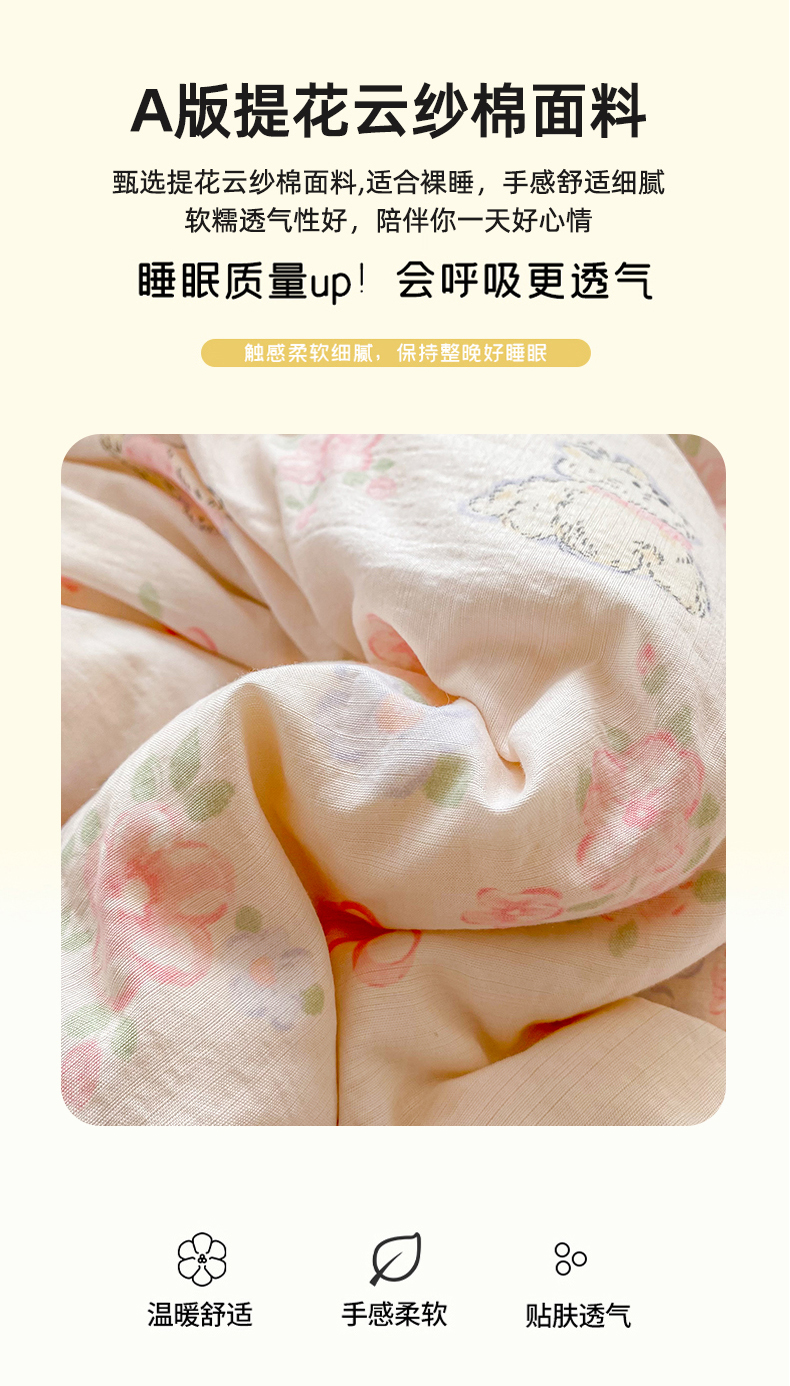 (总)美宜家 2025新款A类云感针织双层纱超软糯夏被空调被被芯,花漾,萌趣,沐春,入梦,小波点,紫苑