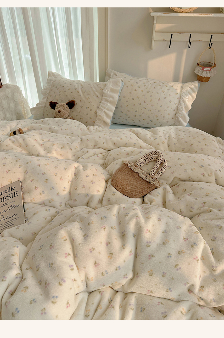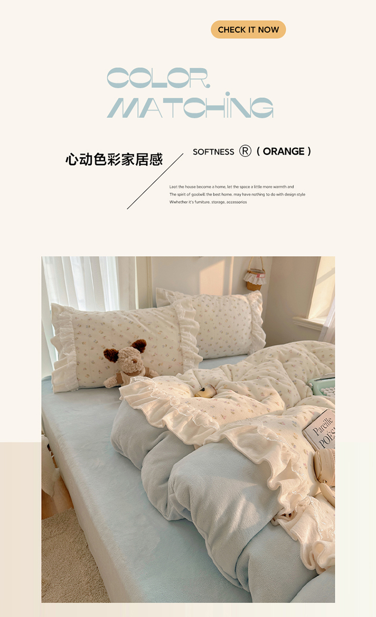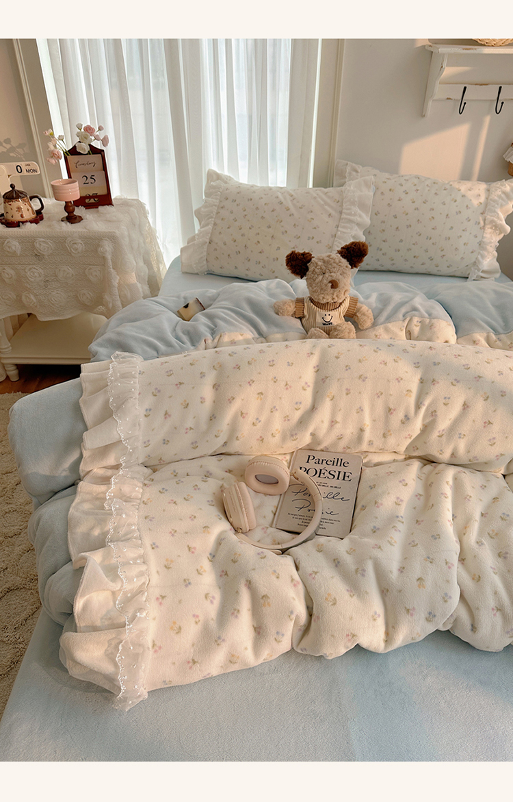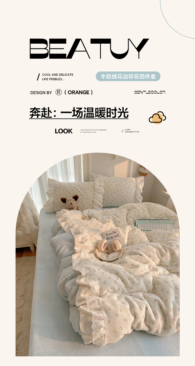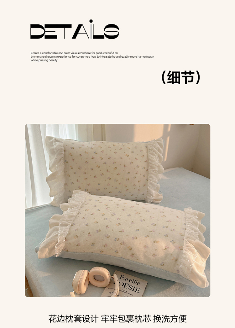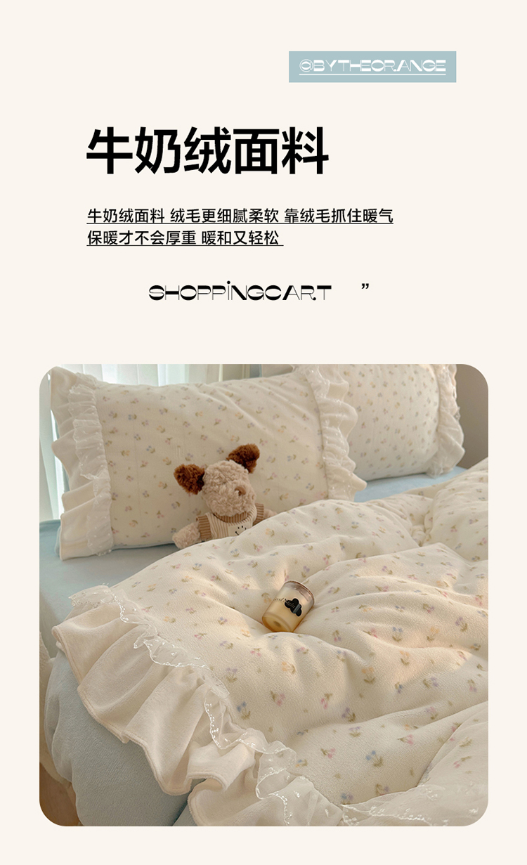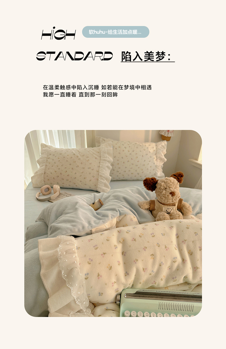当前位置: 91家纺网 > 商品网购 > 床品套件 > 四件套 > 牛奶绒四件套 > 山茶家纺 2025新款韩系A类牛奶绒花边印花四件套梦境 梦境-小樱桃-蓝