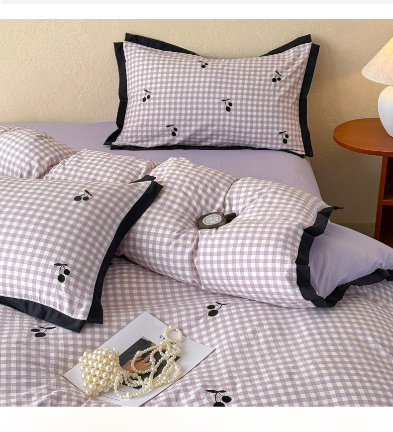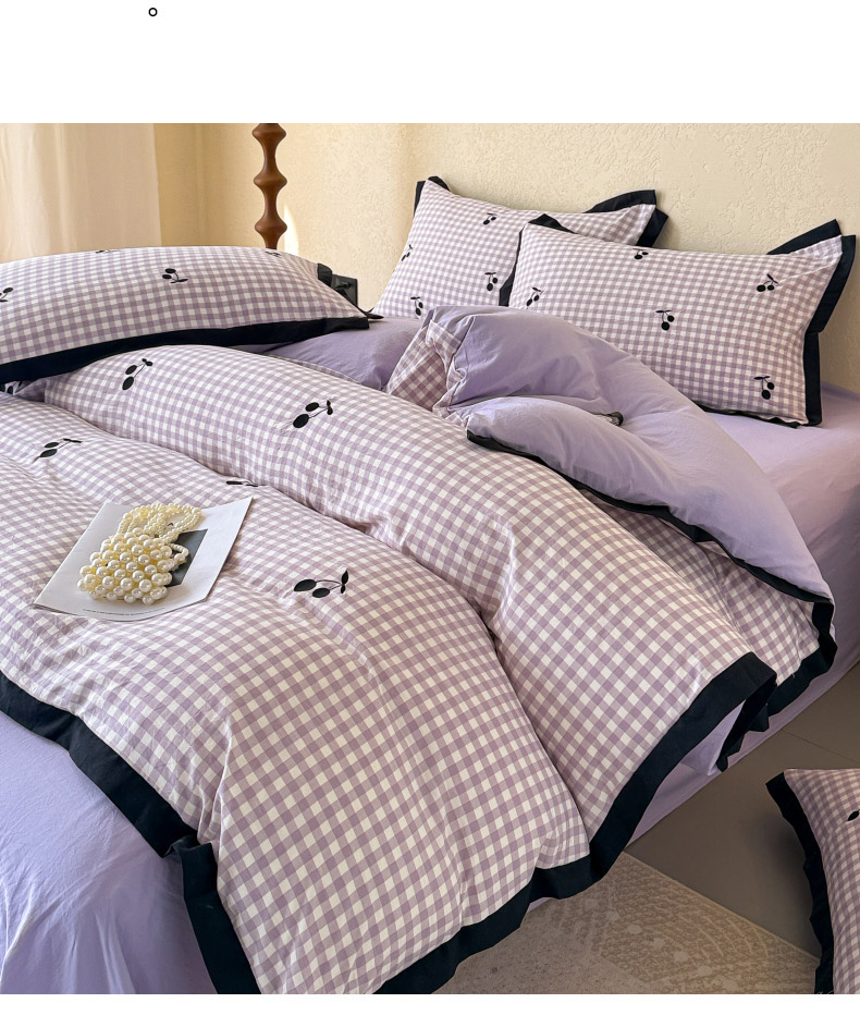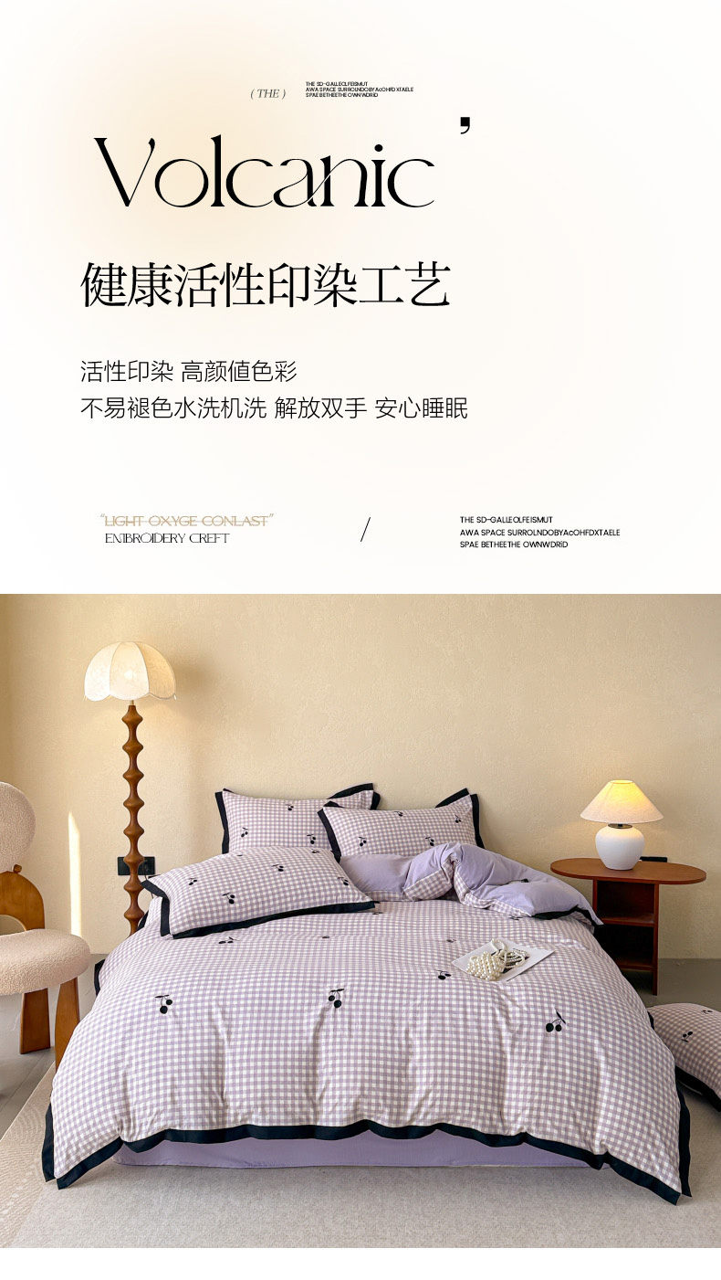 当前位置: 91家纺网 > 商品网购 > 床品套件 > 四件套 > 其它四件套 > 米可2025新款水洗棉绣花花边款四件套 樱桃-紫