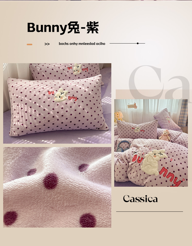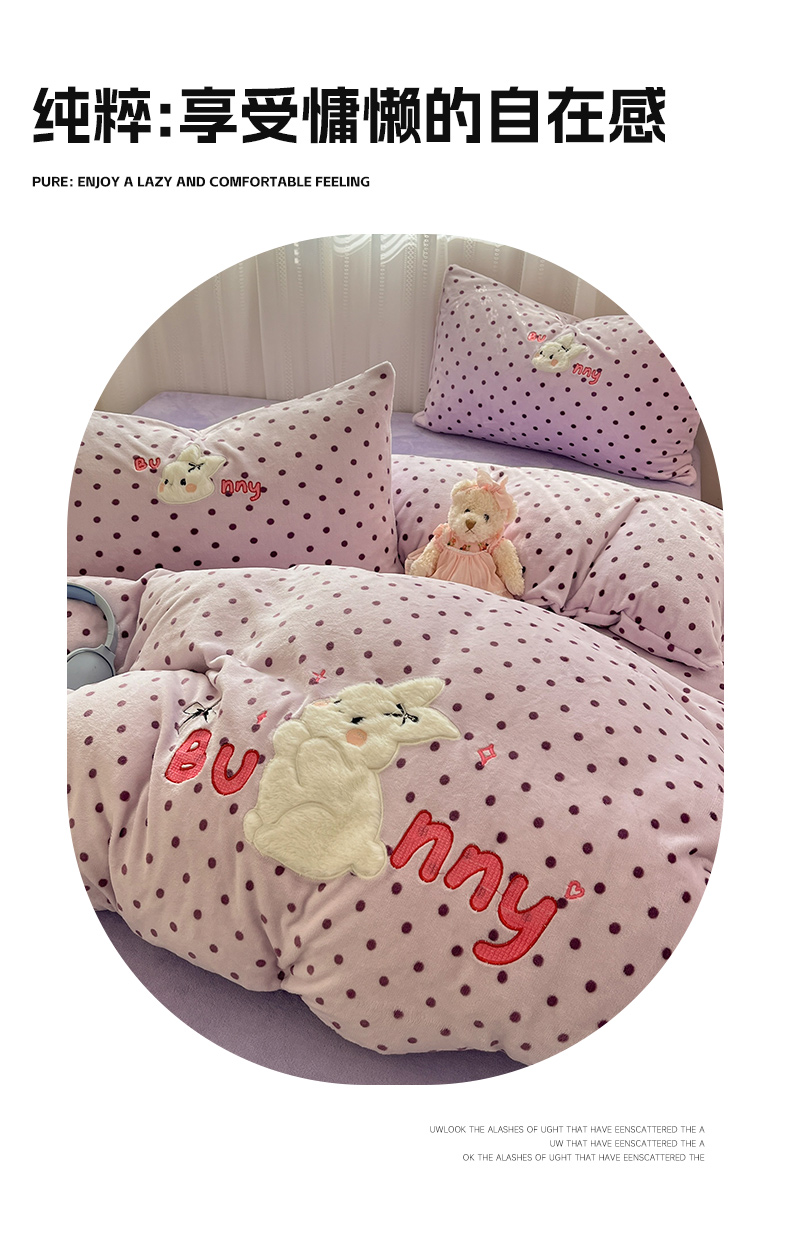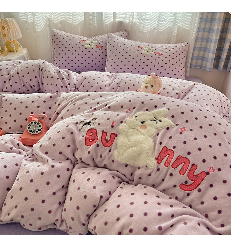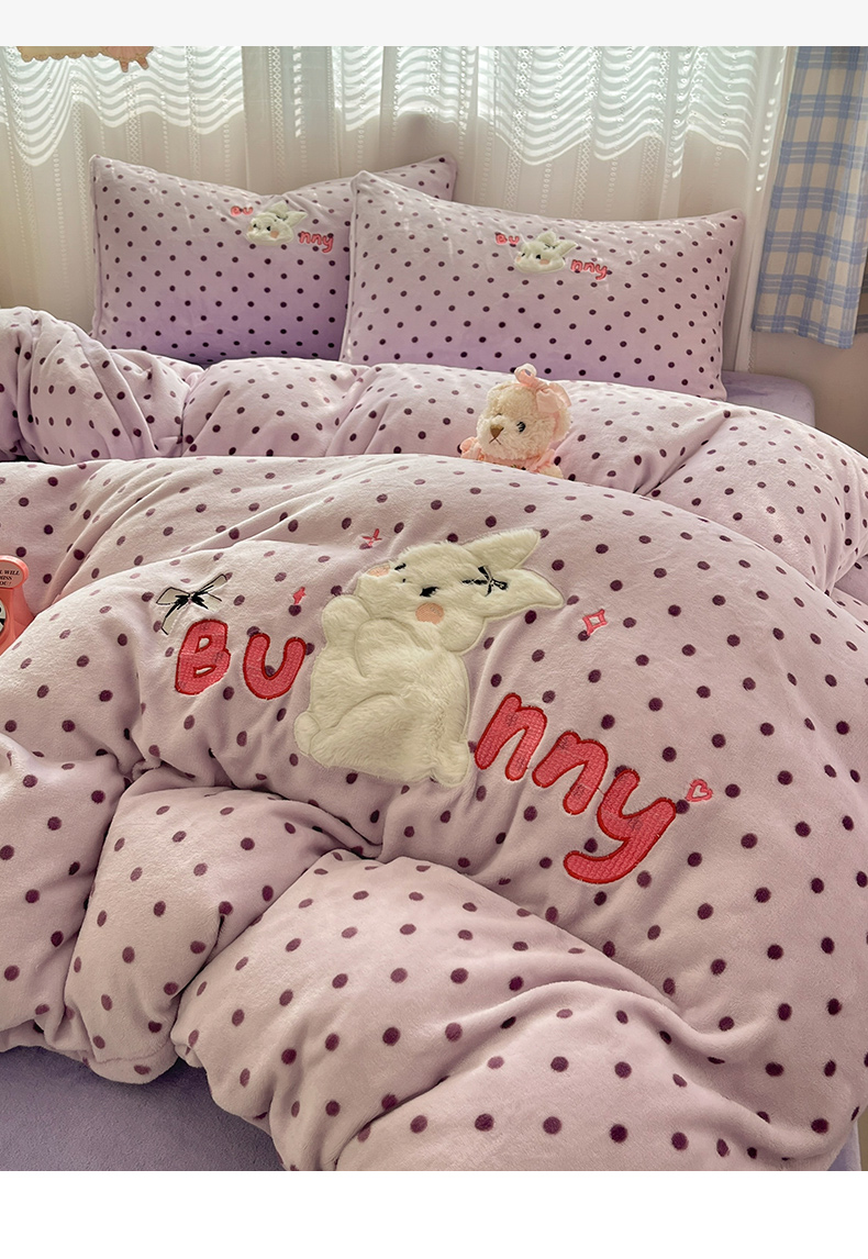 商品名称:红嘴企鹅 2025新款精致贴布绣牛奶绒四件套 Bunny兔-紫