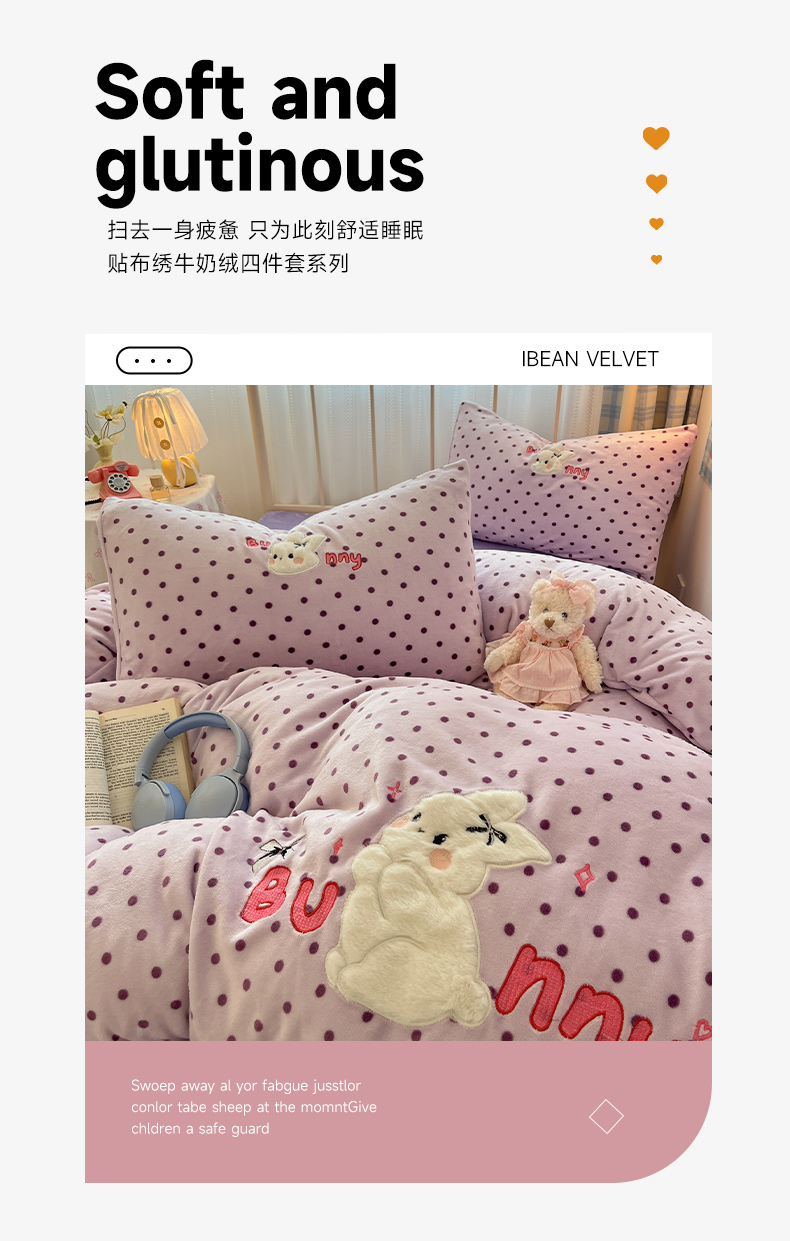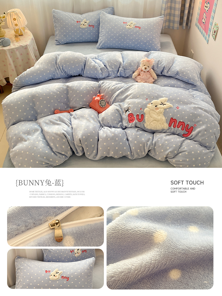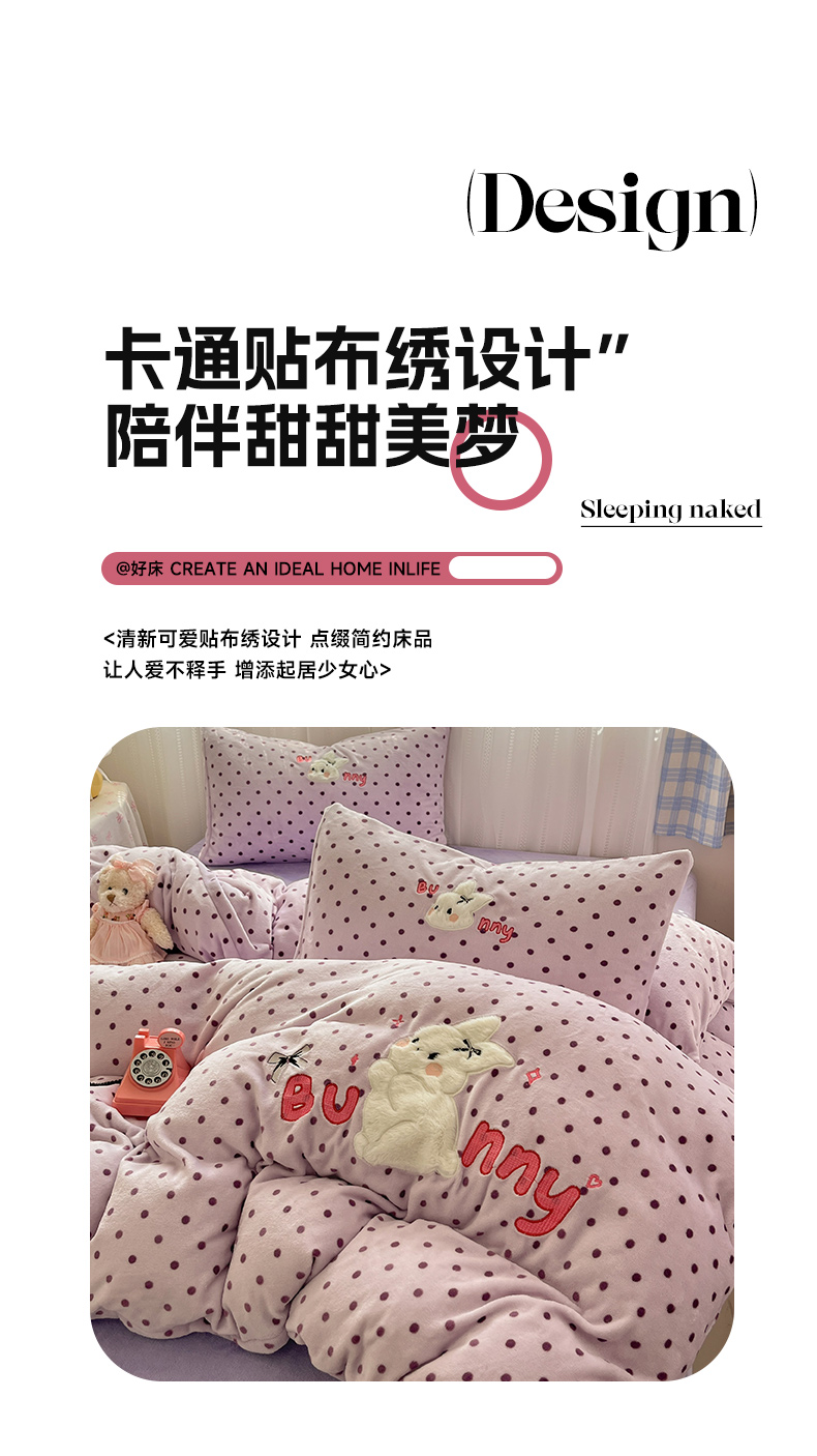 (总)红嘴企鹅 2025新款精致贴布绣牛奶绒四件套,棒棒糖-粉,Bunny兔-粉,Bunny兔-蓝,Bunny兔-紫,Cute狗-粉,Cute狗-蓝,Cute狗-紫