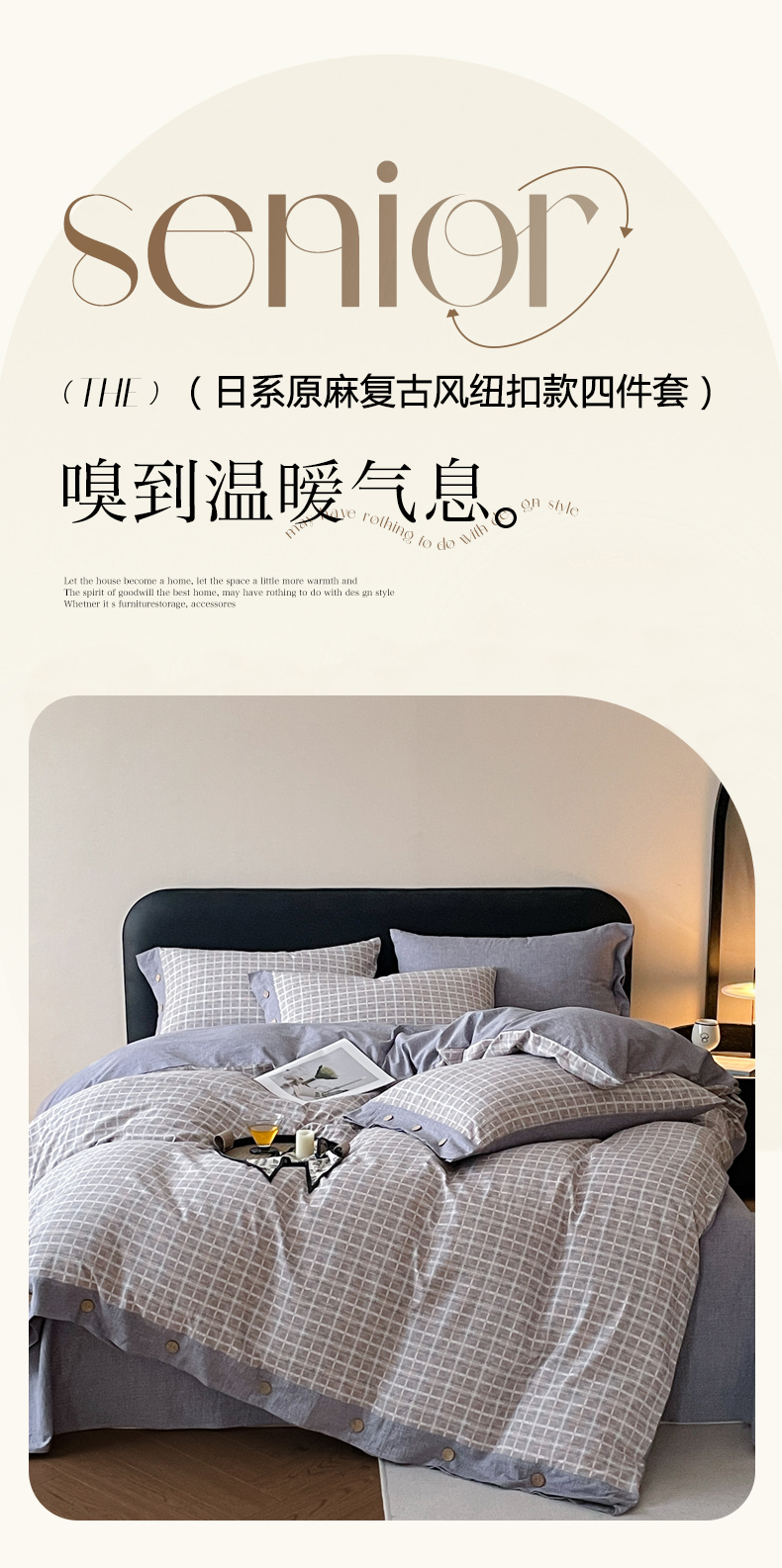当前位置: 91家纺网 > 商品网购 > 床品套件 > 四件套 > 其它四件套 > 慕木家纺 2025新款日系原麻复古风纽扣款四件套 纽扣款-伯克利-咖