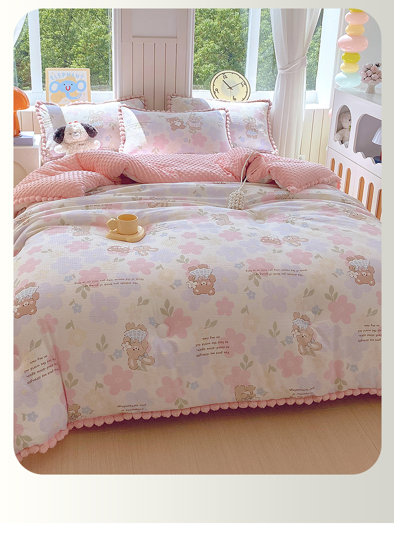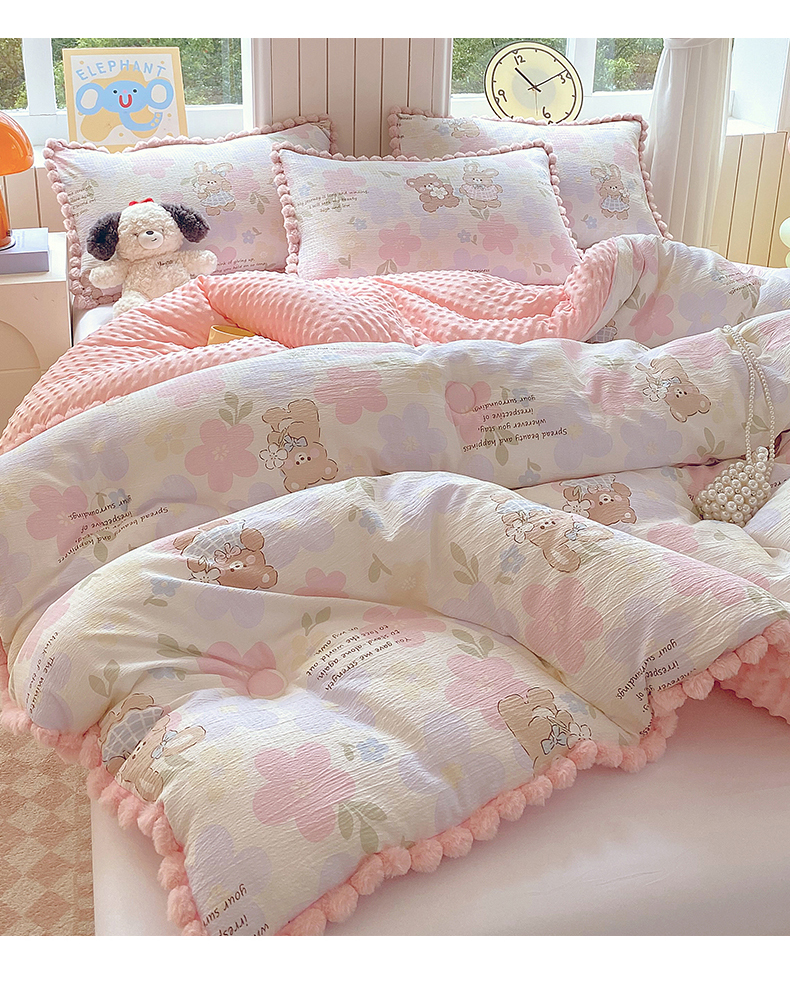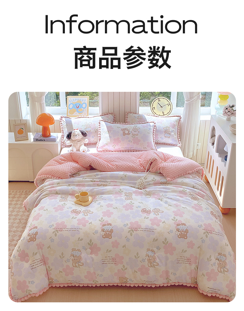 (总)宝士康家纺 2025新品毛球花边豆豆绒被子被芯冬被/春秋被/被芯/跨境外贸,花漾甜心,乐趣,萌犬小铺,沐春,千夏,松饼小狗,花间采趣,花乡小熊