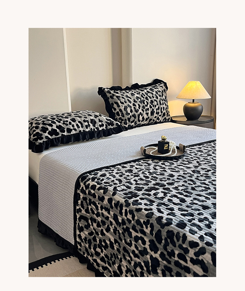 安哆啦家纺 2025新款法式赫本风牛奶绒单床盖 高级豹纹