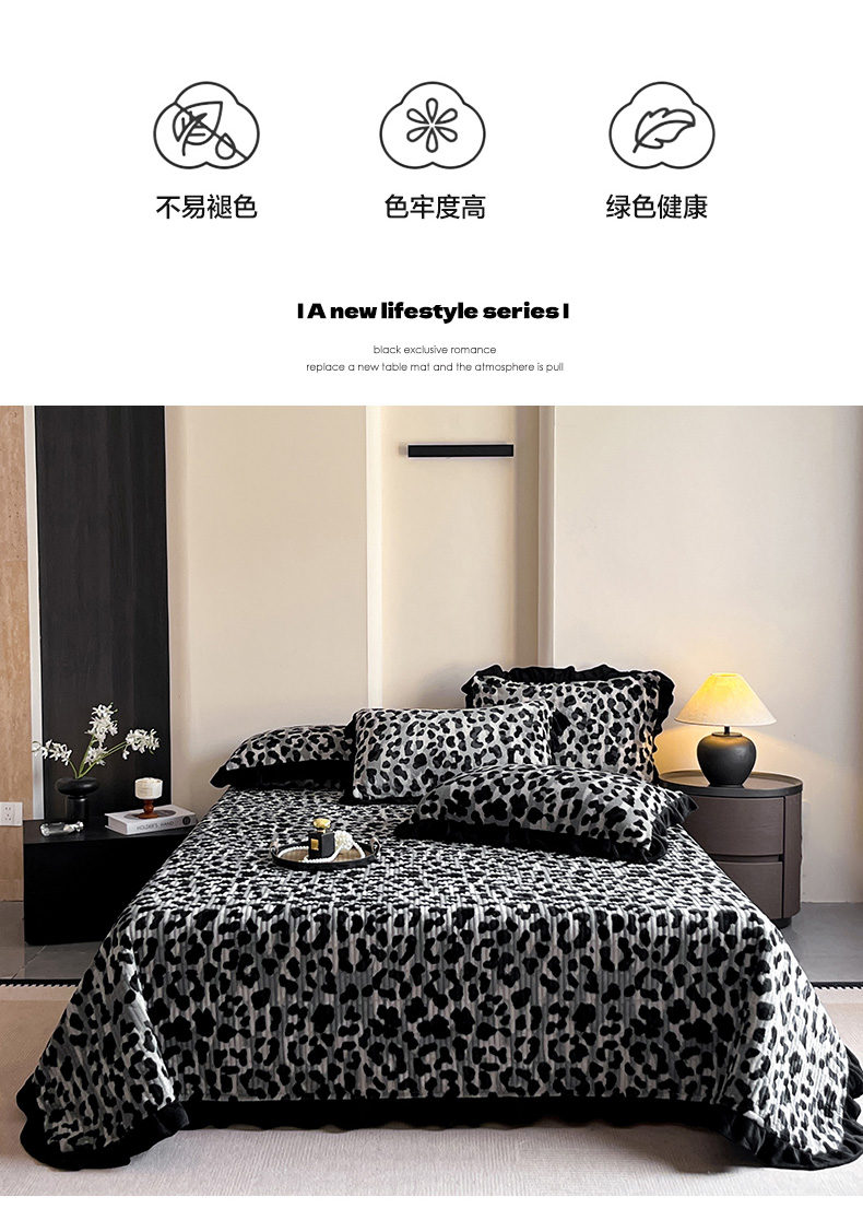 • 91家纺网 家纺一手货源 找家纺 安哆啦家纺 2025新款法式赫本风牛奶绒单床盖 高级豹纹