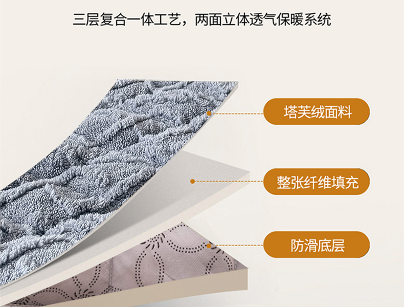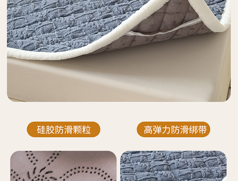 商品名称:叠派家纺 2025新款塔芙绒夹棉床垫 浅灰色