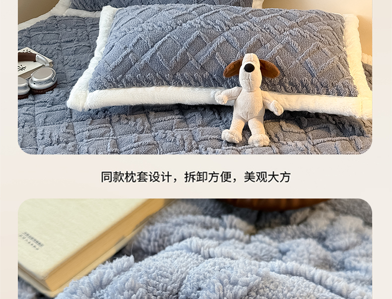 (总)叠派家纺 2025新款高克重高端牛奶绒雕花织带工艺款梦巢系列四件套(直播热款)提供买家秀,梦巢-星空蓝,梦巢-金典灰,梦巢-麦卡其,梦巢-玉粉,送精美手提包装