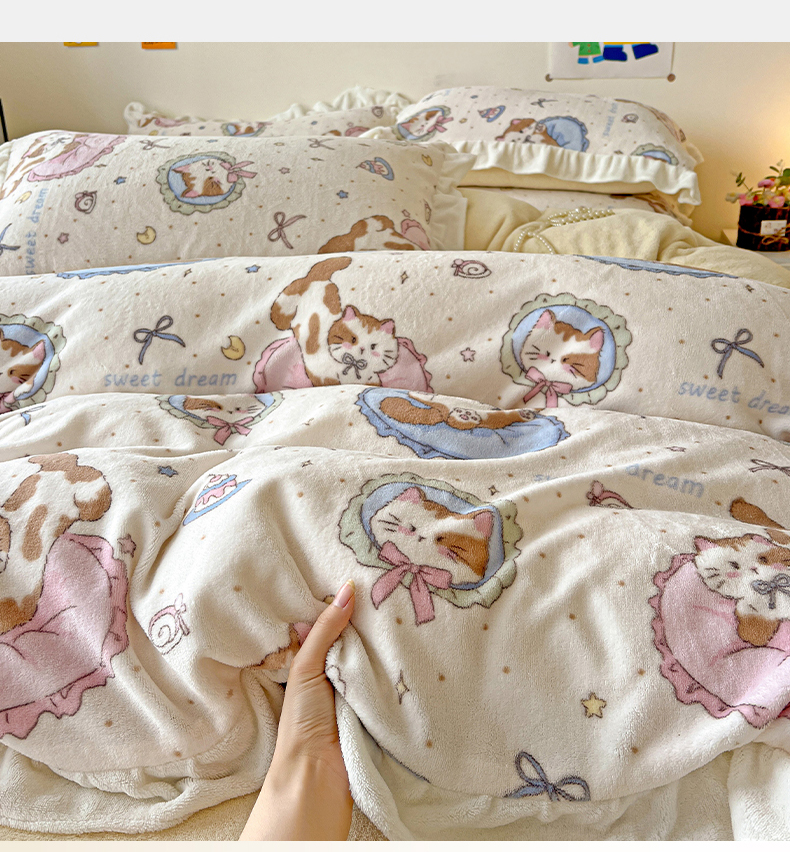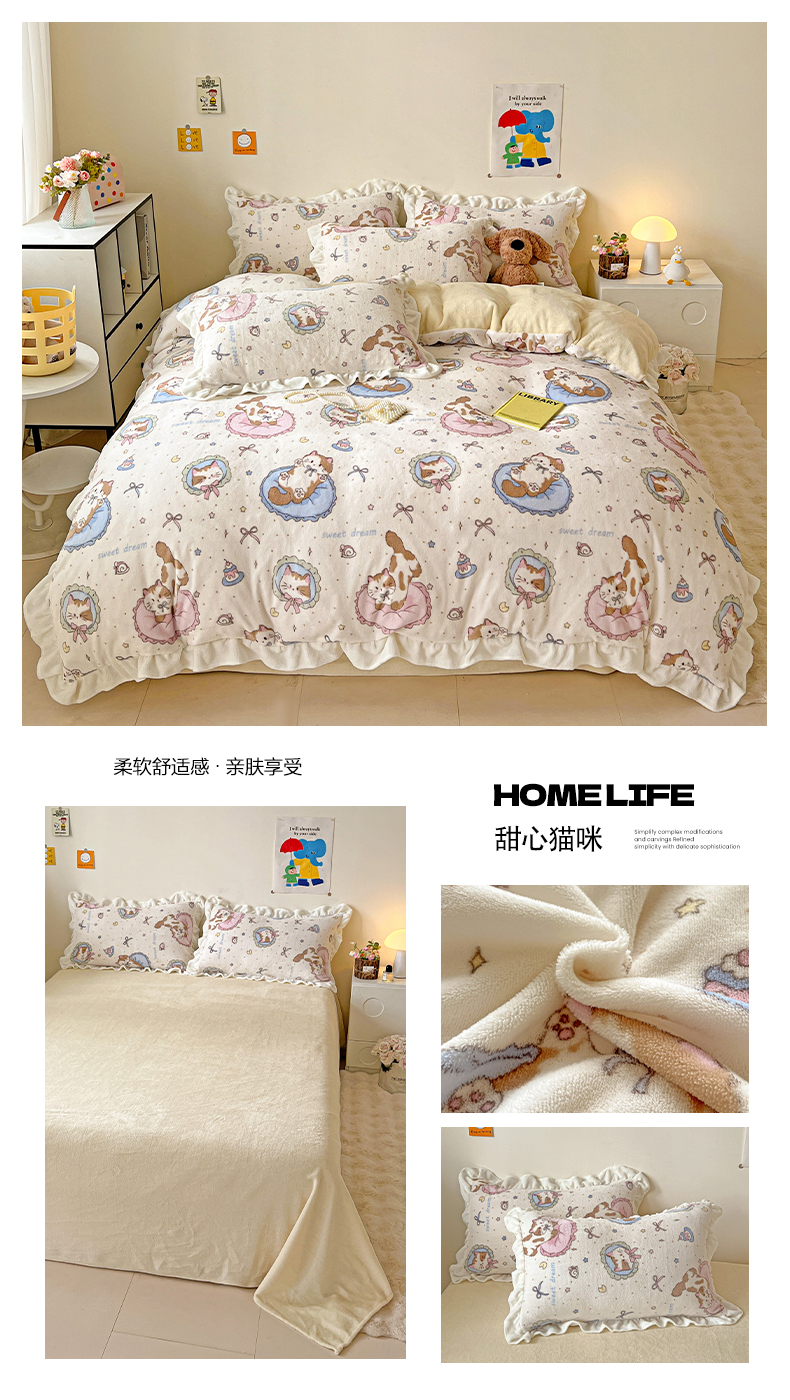 当前位置: 91家纺网 > 商品网购 > 床品套件 > 四件套 > 牛奶绒四件套 > 眷恋家纺 2025新款秋冬新品牛奶绒花边四件套 甜心猫咪