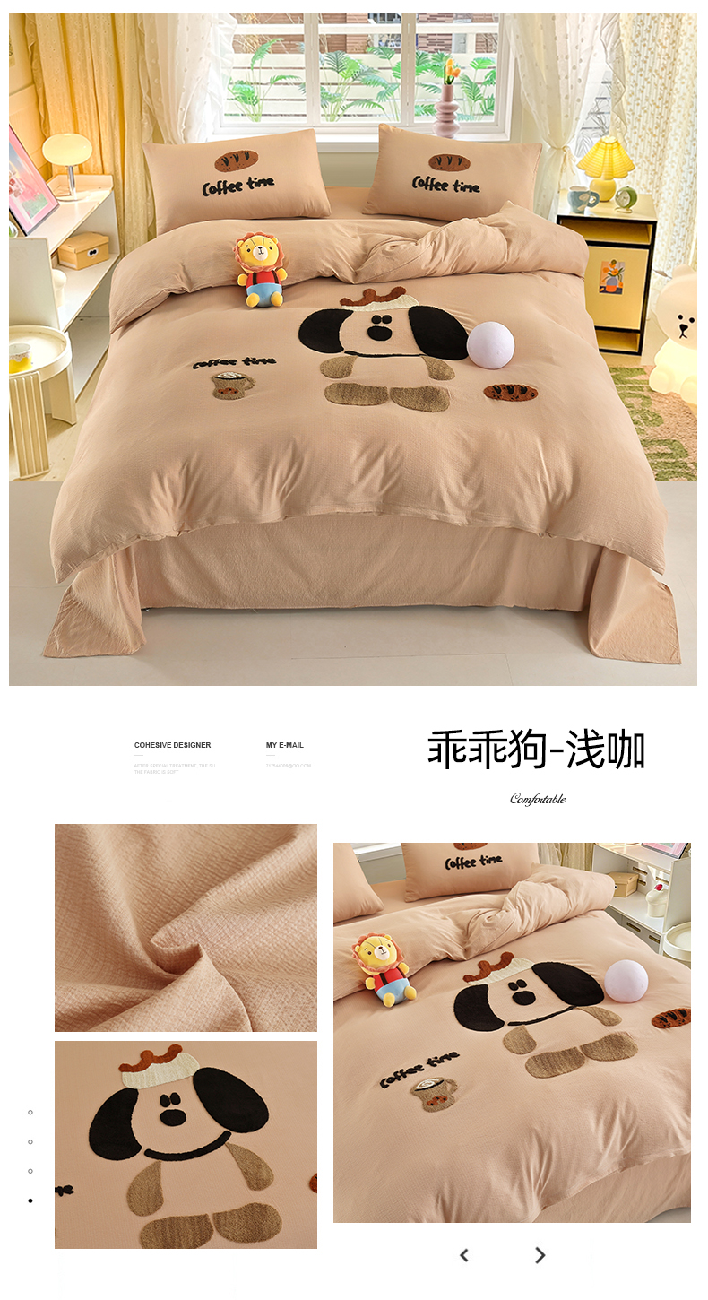 当前位置: 91家纺网 > 商品网购 > 床品套件 > 四件套 > 毛巾绣四件套 > 恋之语 2025新款皱皱纱木棉毛巾绣四件套及单被套系列-乖乖狗 乖乖狗-抹茶绿