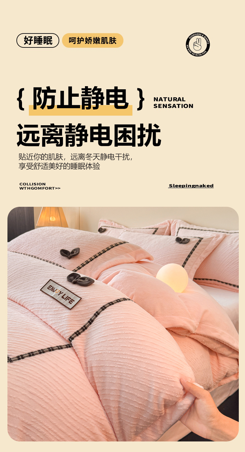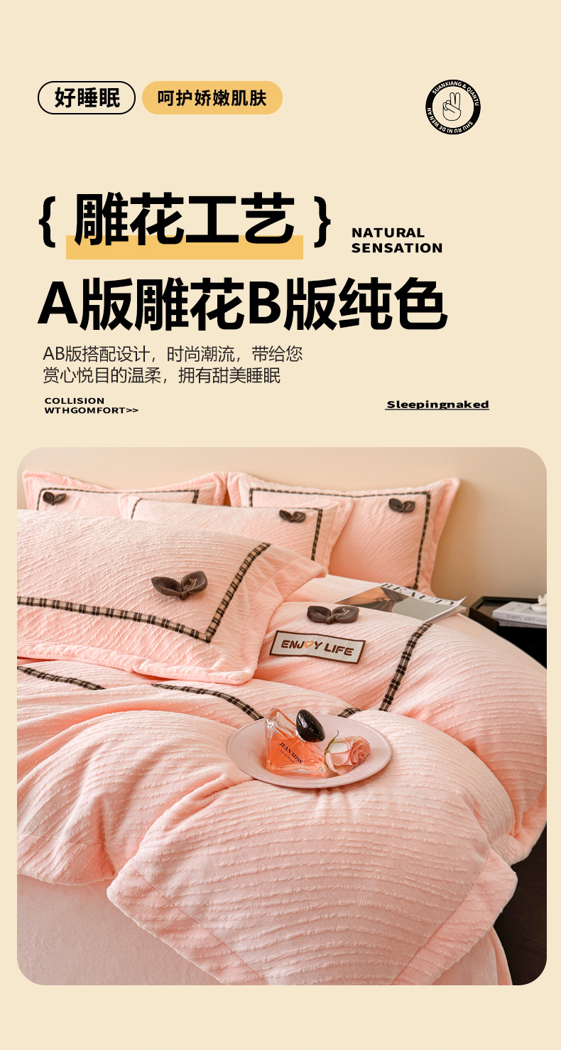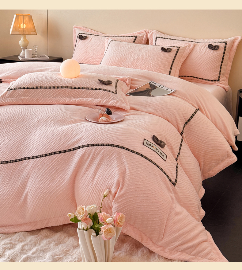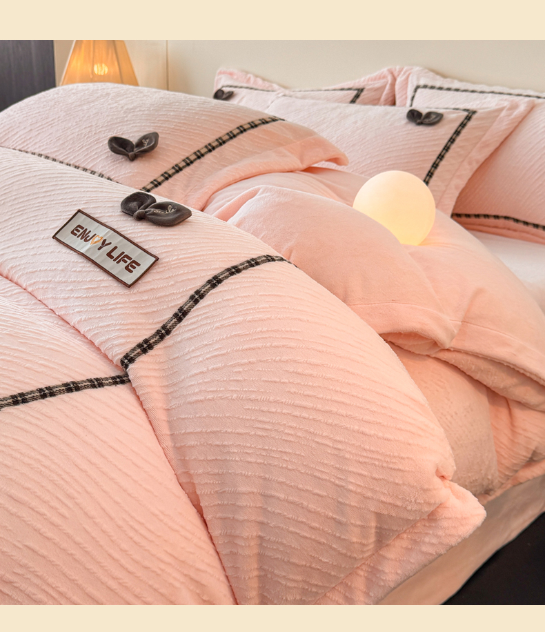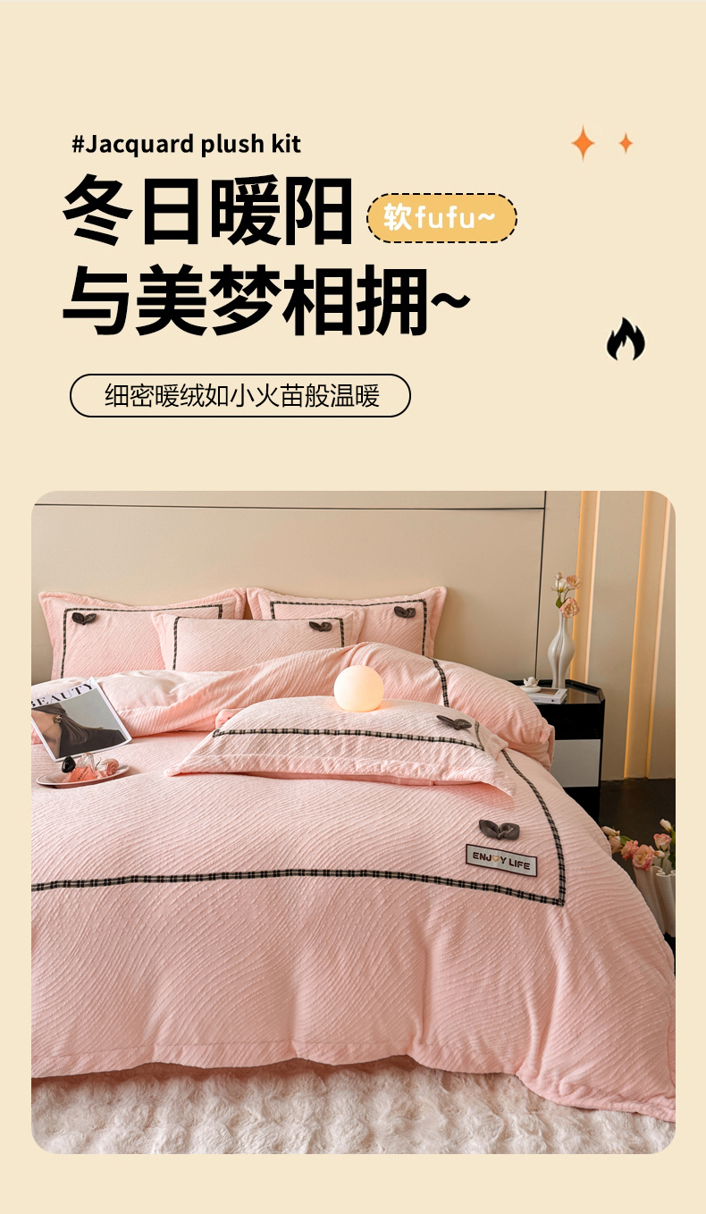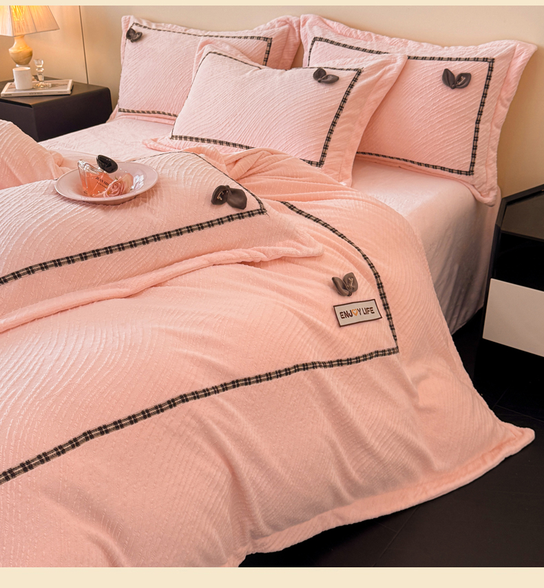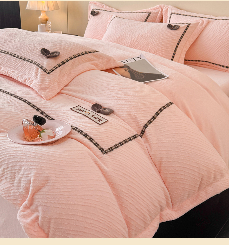 叠派家纺 2025新款高克重高端牛奶绒雕花织带工艺款梦巢系列四件套(直播热款)提供买家秀 梦巢-玉粉