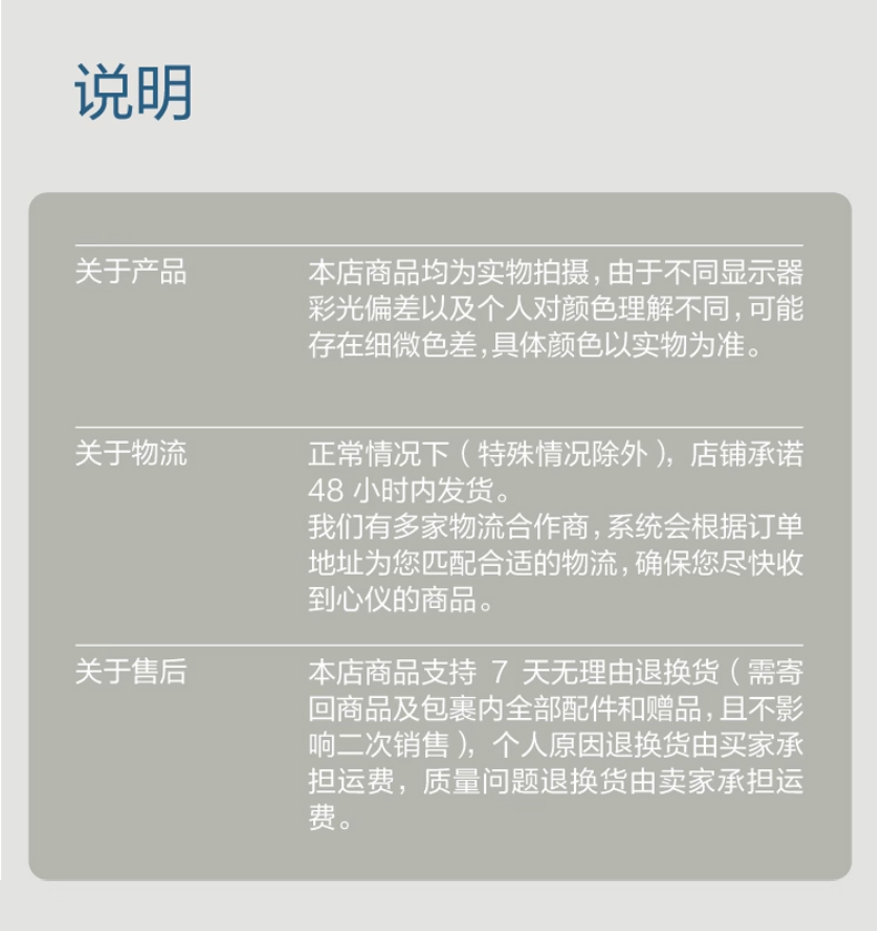 云仓服务3:享急速发货,18点之前下单,2小时内发货,保证发货时效;