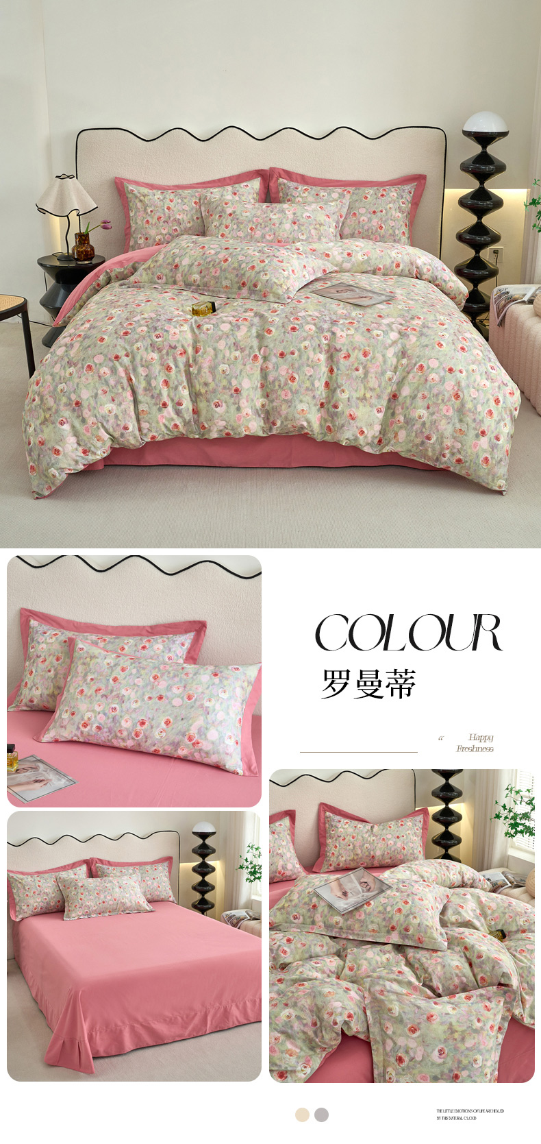 三沁家居 2025新款全棉碳素磨毛数码印花四件套 莫妮卡
