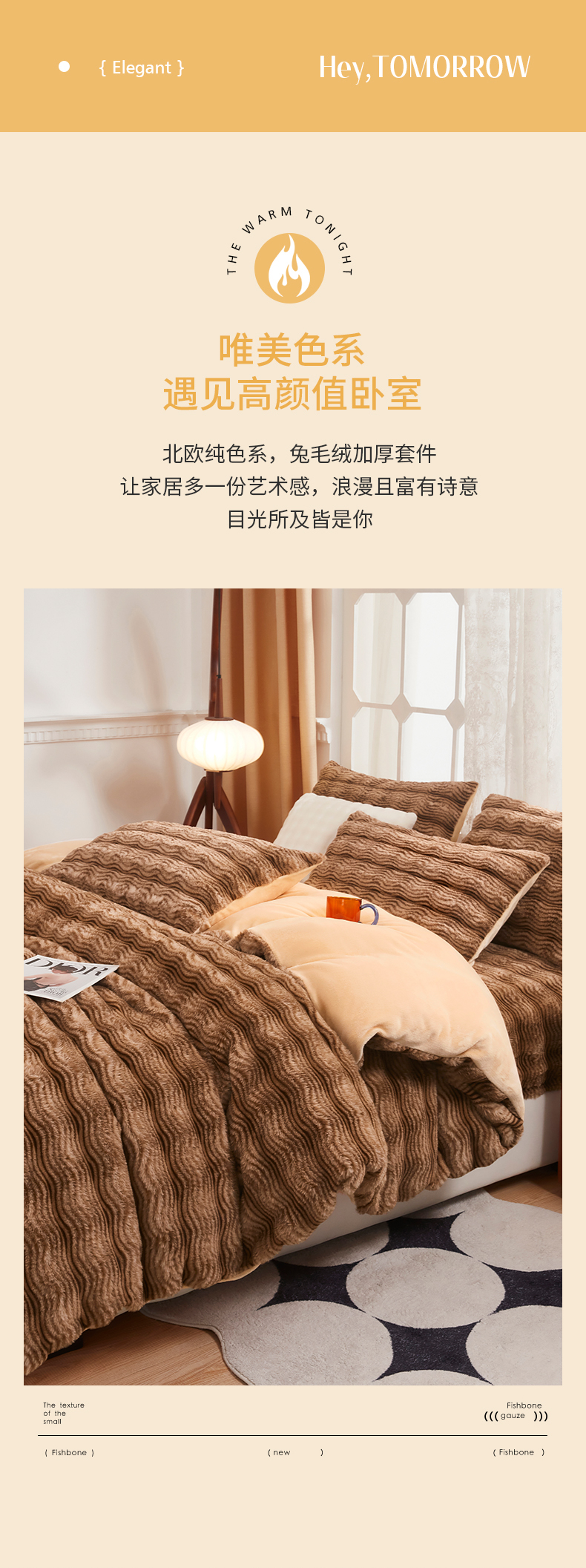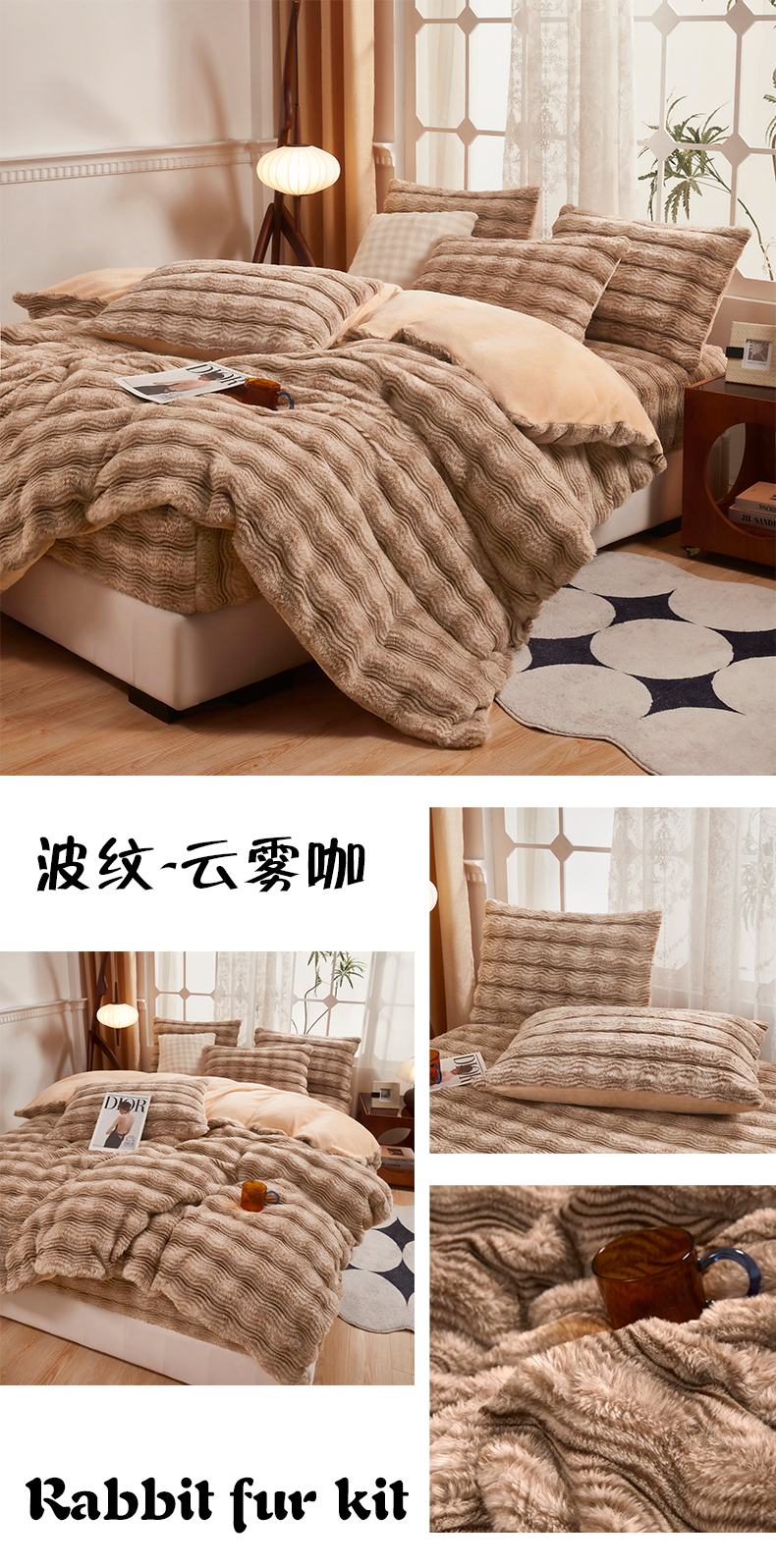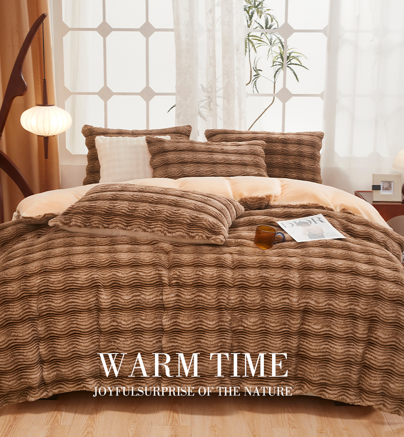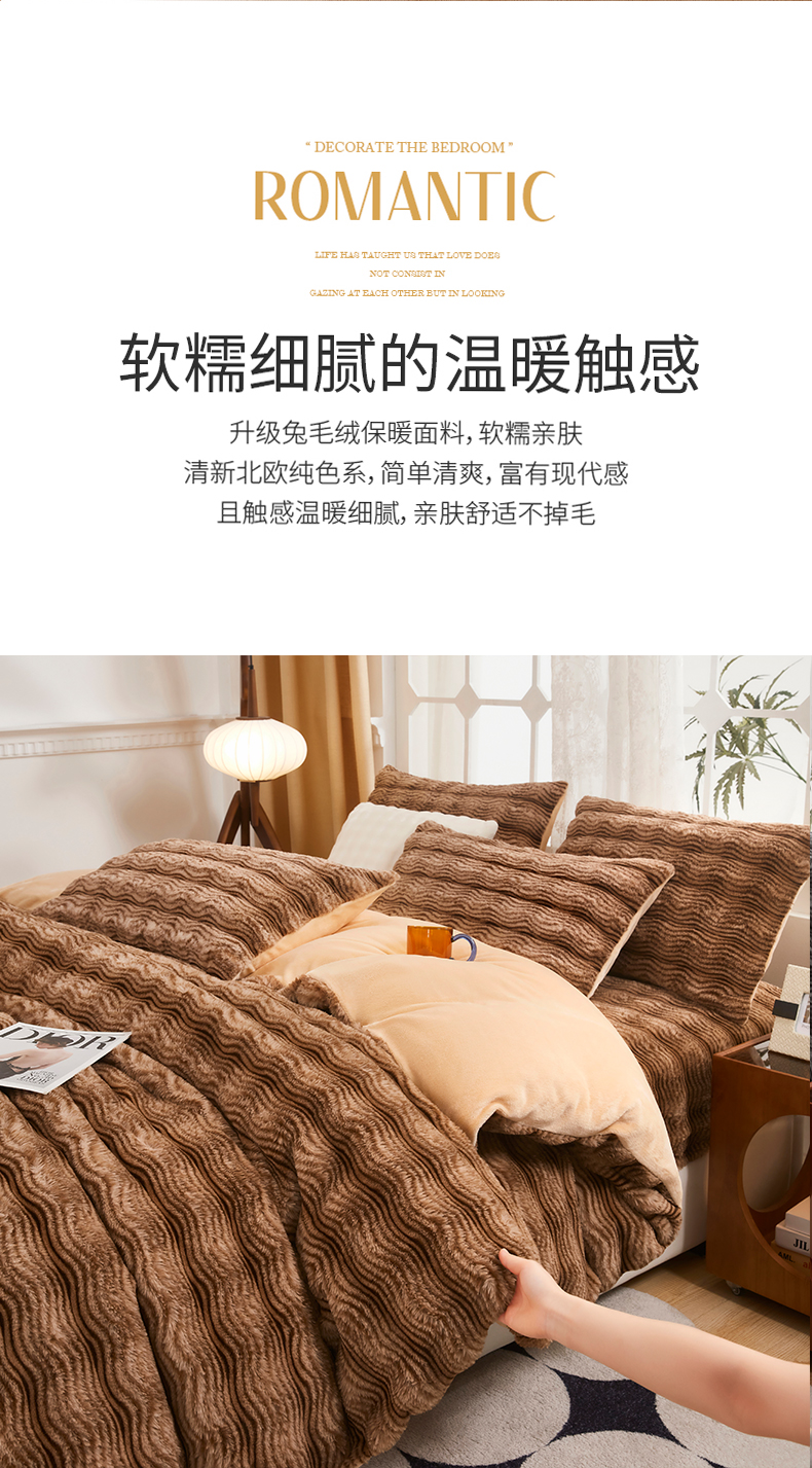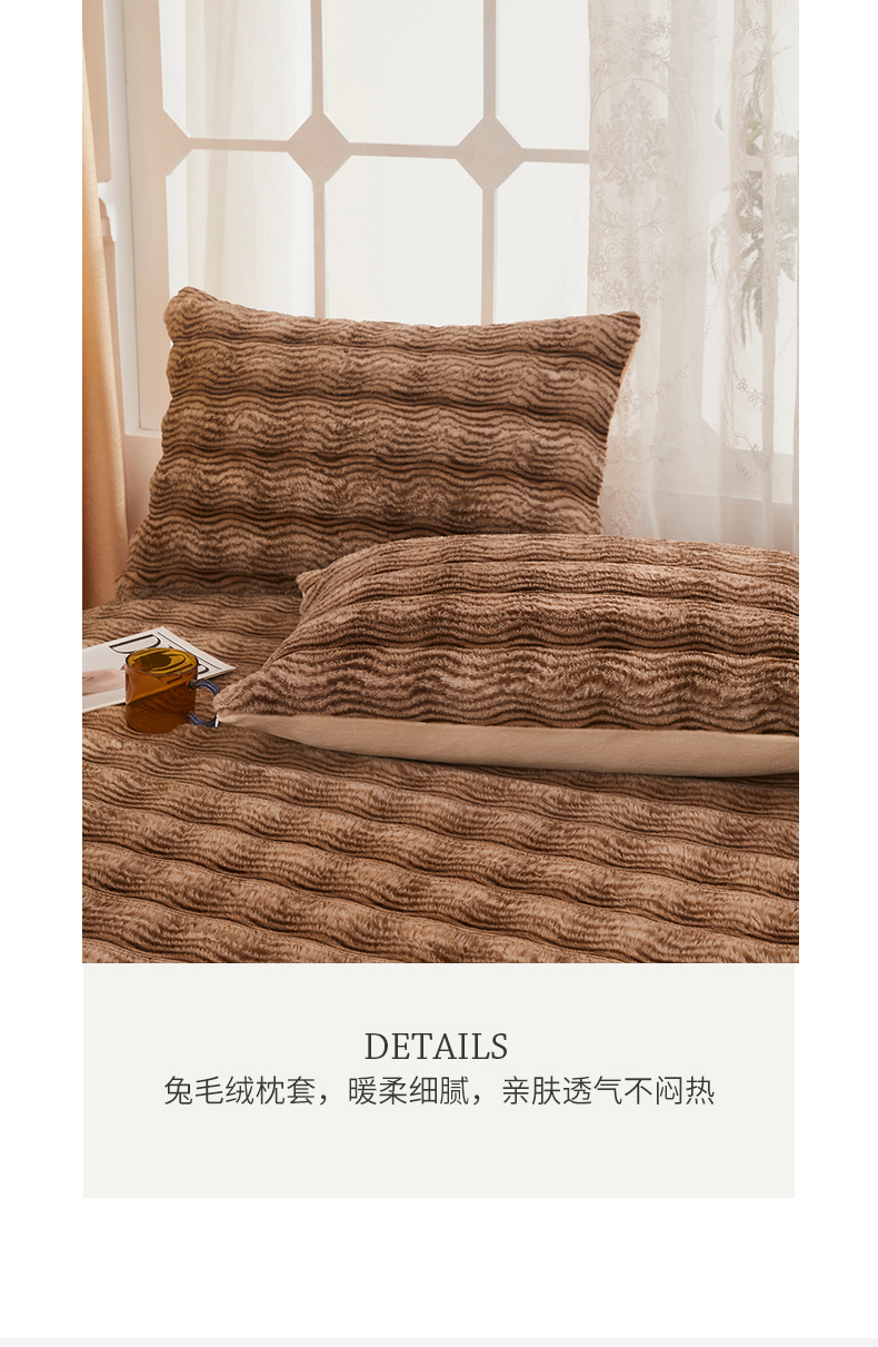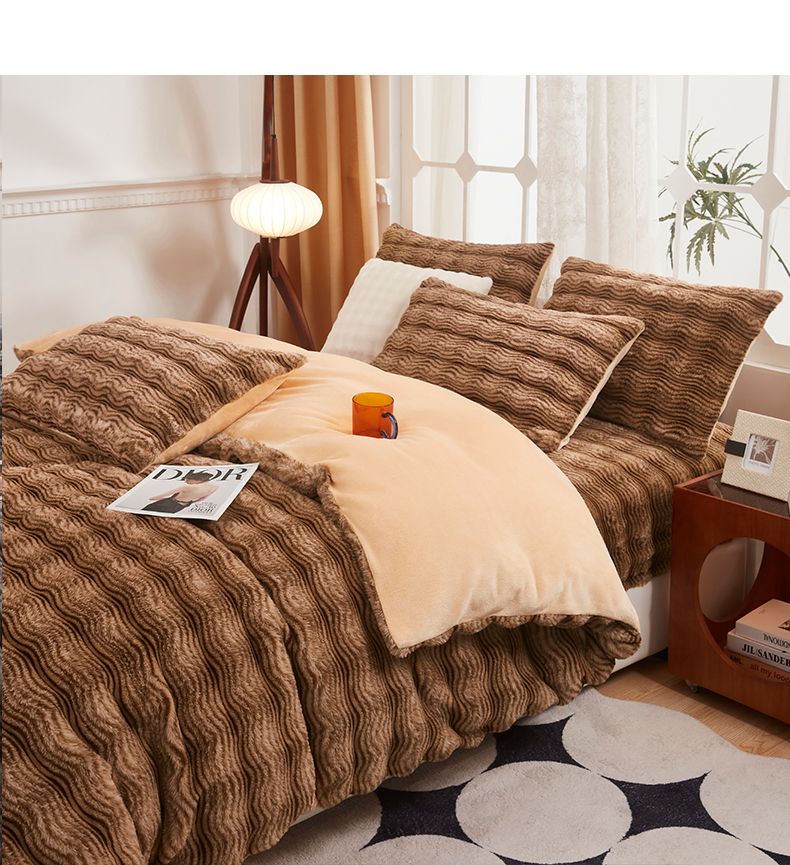当前位置: 91家纺网 > 商品网购 > 床品套件 > 四件套 > 兔毛绒四件套 > 乐居家纺 2025新款加厚兔毛绒纯色四件套套件系列 波纹-云雾棕