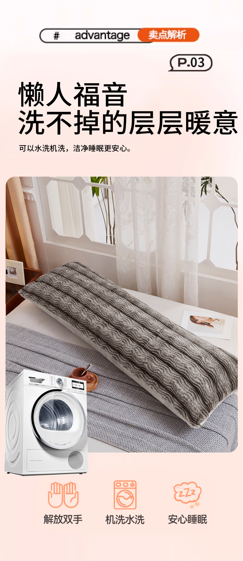 商品名称:乐居家纺 2025新款加厚兔毛绒纯色双人枕系列 波纹-云雾浅灰