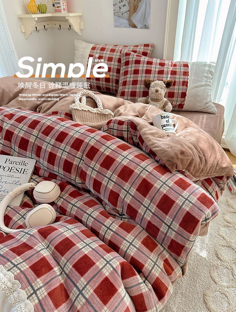 (总)桃子家居 2025新款A类ins圣诞新年费尔岛秋冬限定款加厚牛奶绒系列四件套,绒-冬日小喵粉,绒-冬日小喵蓝,绒-费尔岛小狗,绒-费尔岛小熊,绒-圣诞派对红,绒-圣诞派对咖