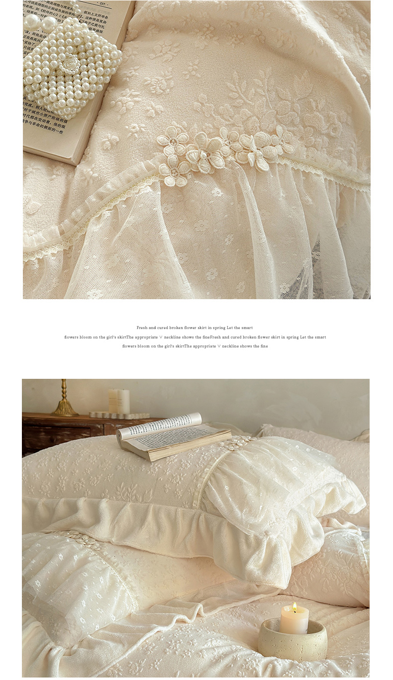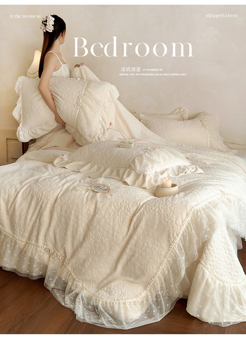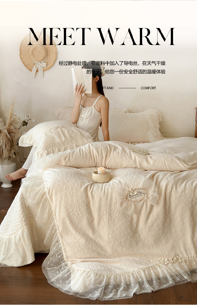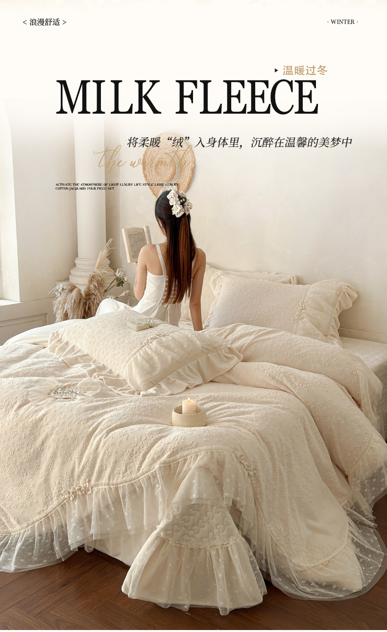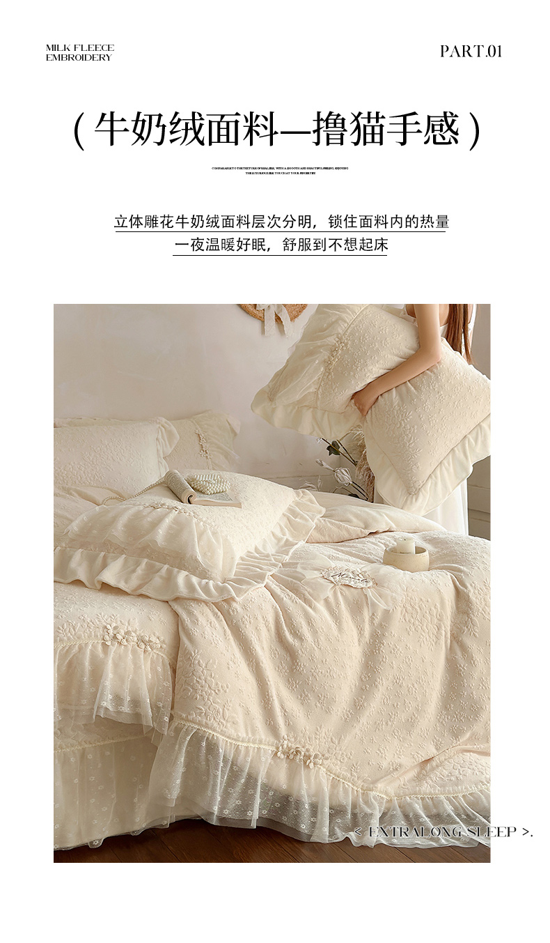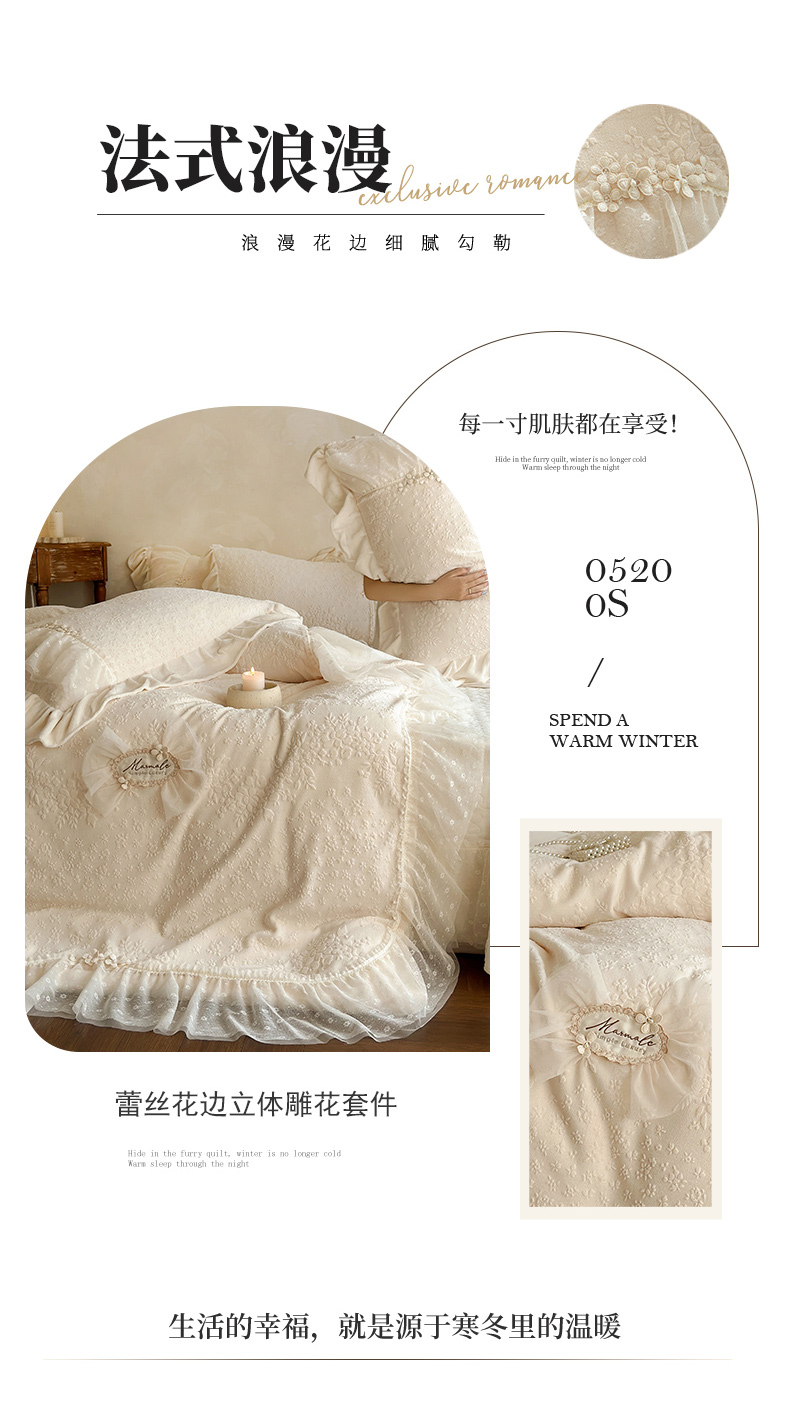 商品名称:乐朵家居 2025新款恋恋花房 牛奶绒 夹棉床盖四件套(主推请询价)奶白