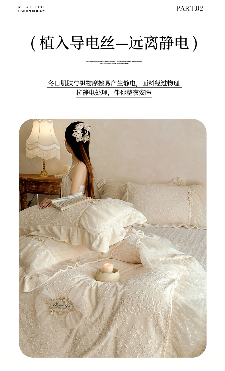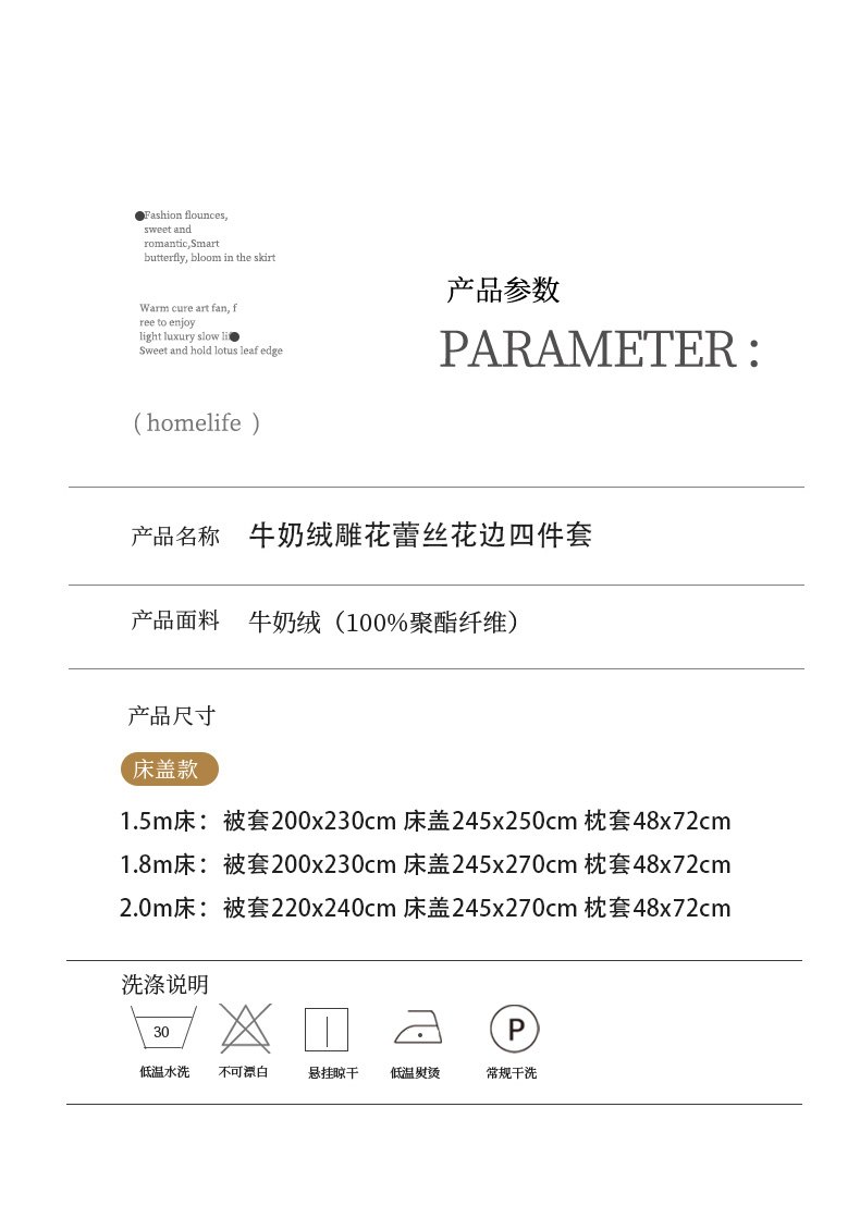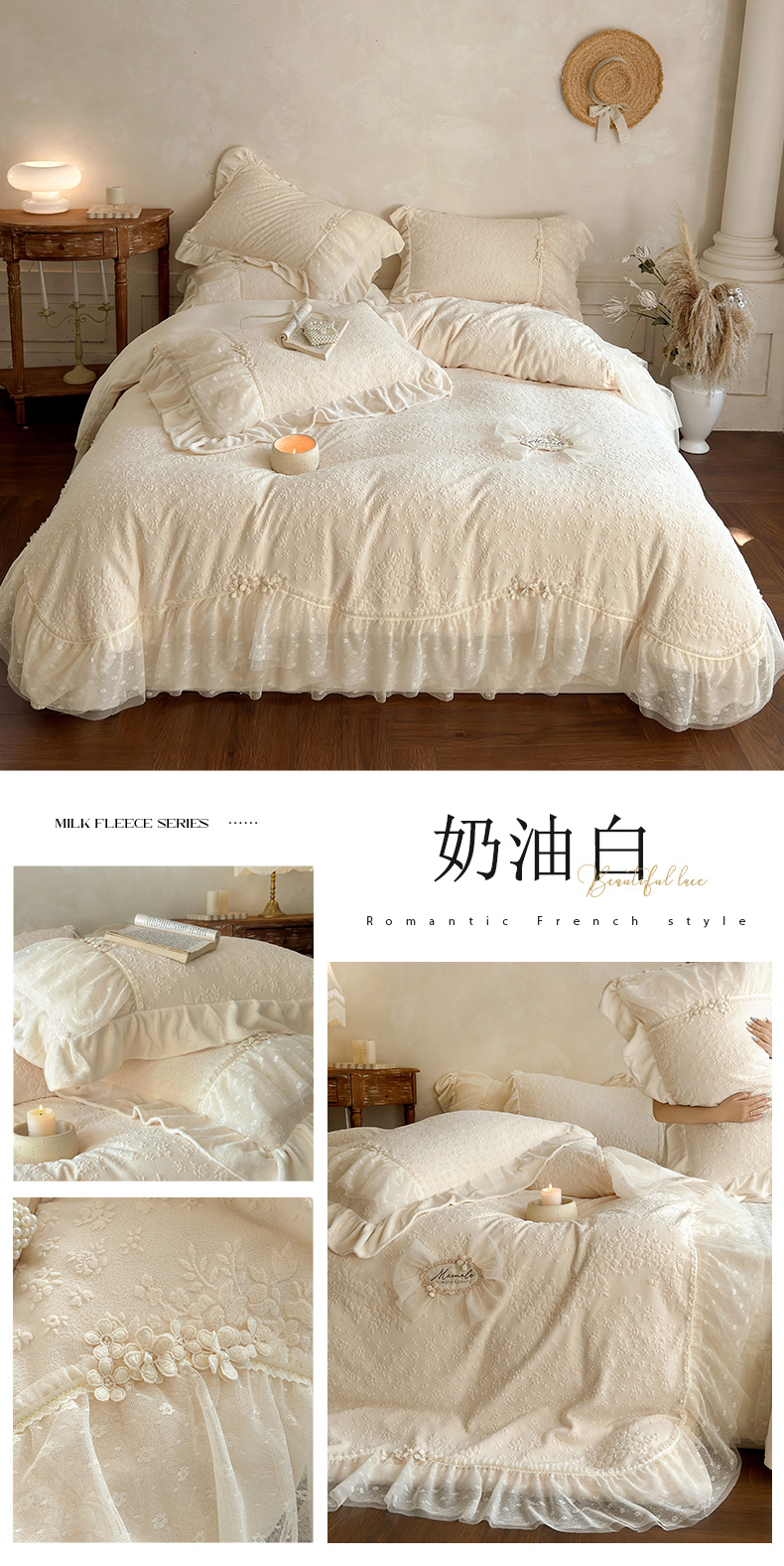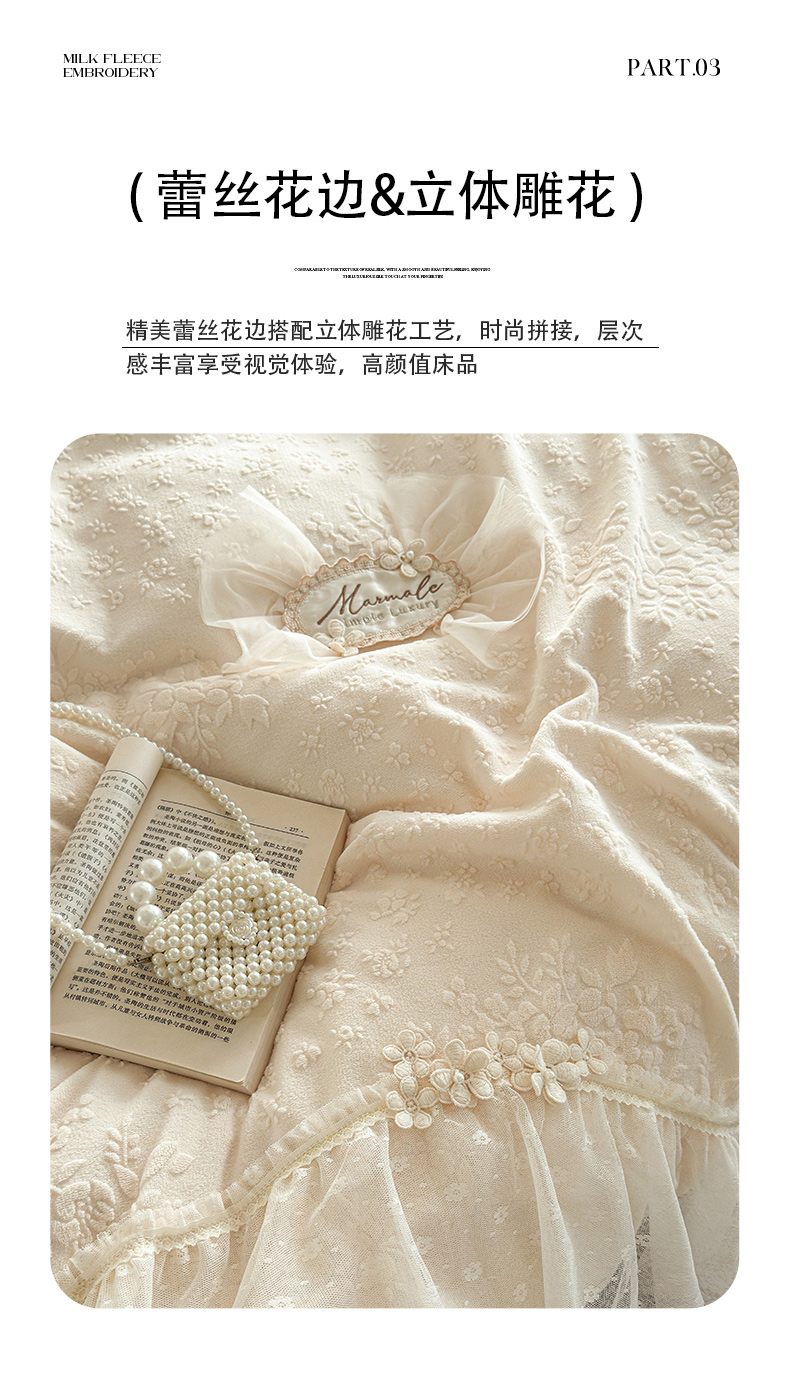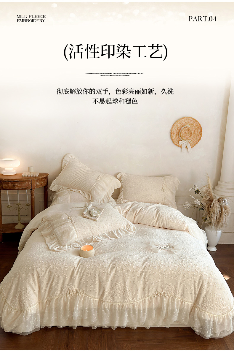 商品名称:乐朵家居 2025新款恋恋花房 牛奶绒 夹棉床盖四件套(主推请询价)奶白
