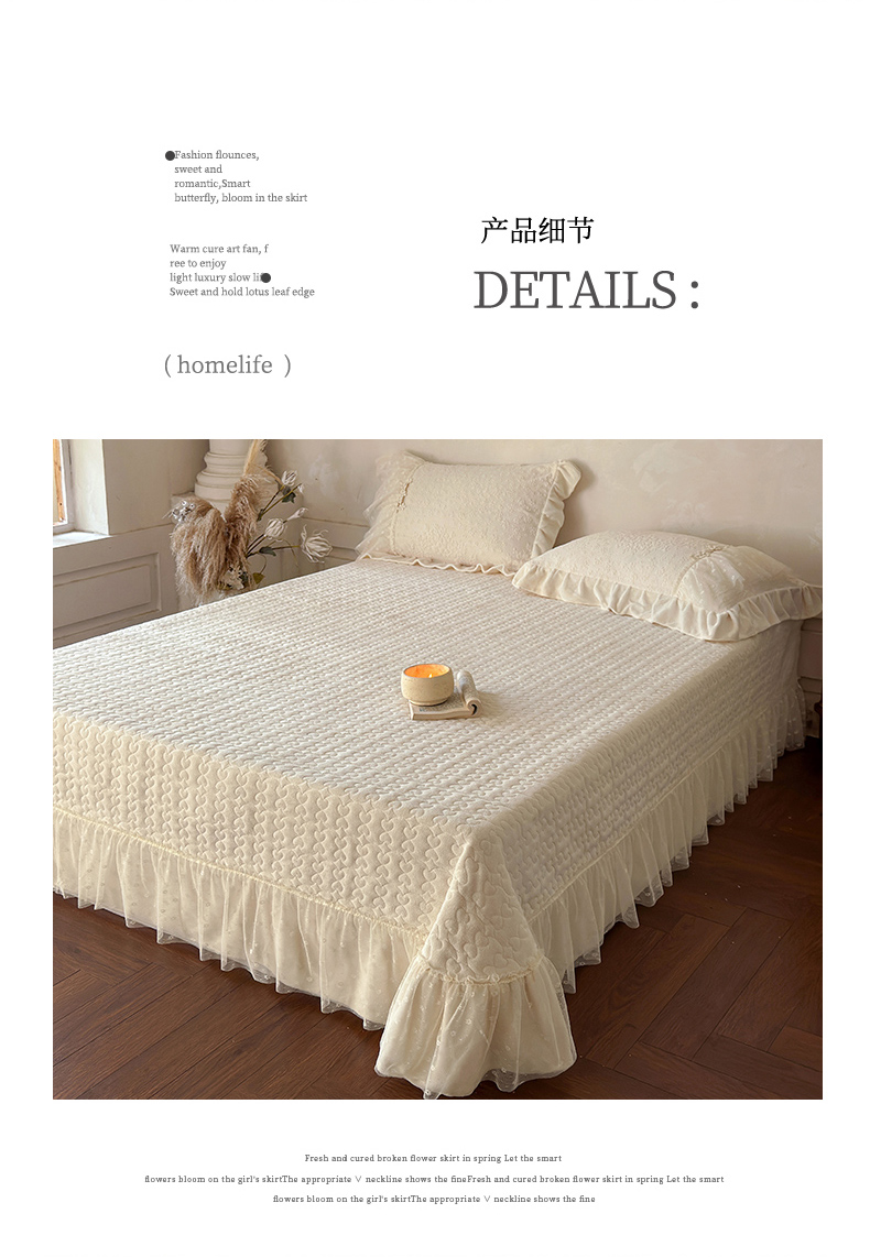 (总)乐朵家居 2026新款 25-3郁金香 天丝缎蕾丝床裙+可配空调被,绿,豆沙,奶白,灰,紫,卡其