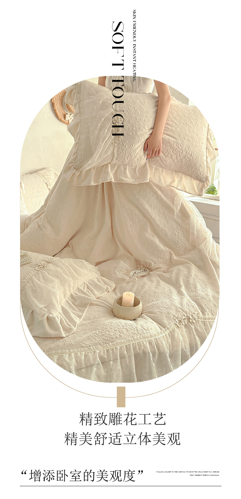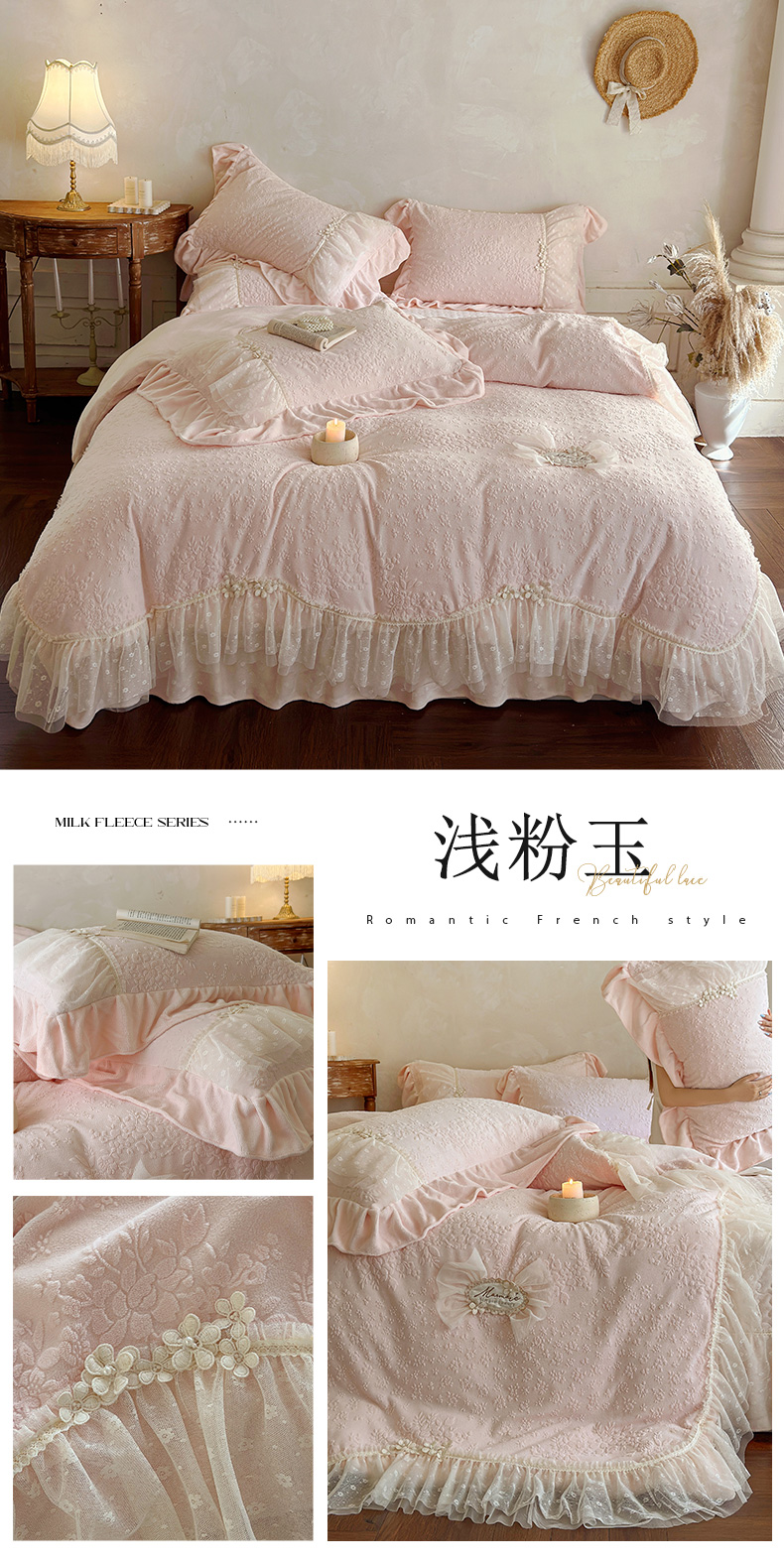 (总) 乐朵家居 2025新款 维娜 牛奶绒 床盖款四件套,粉玉,奶白