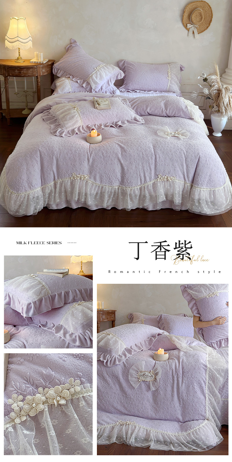 (总)乐朵家居 2026春夏 25-1 芯语 蕾丝床裙,豆沙,灰,卡其,绿,米,紫