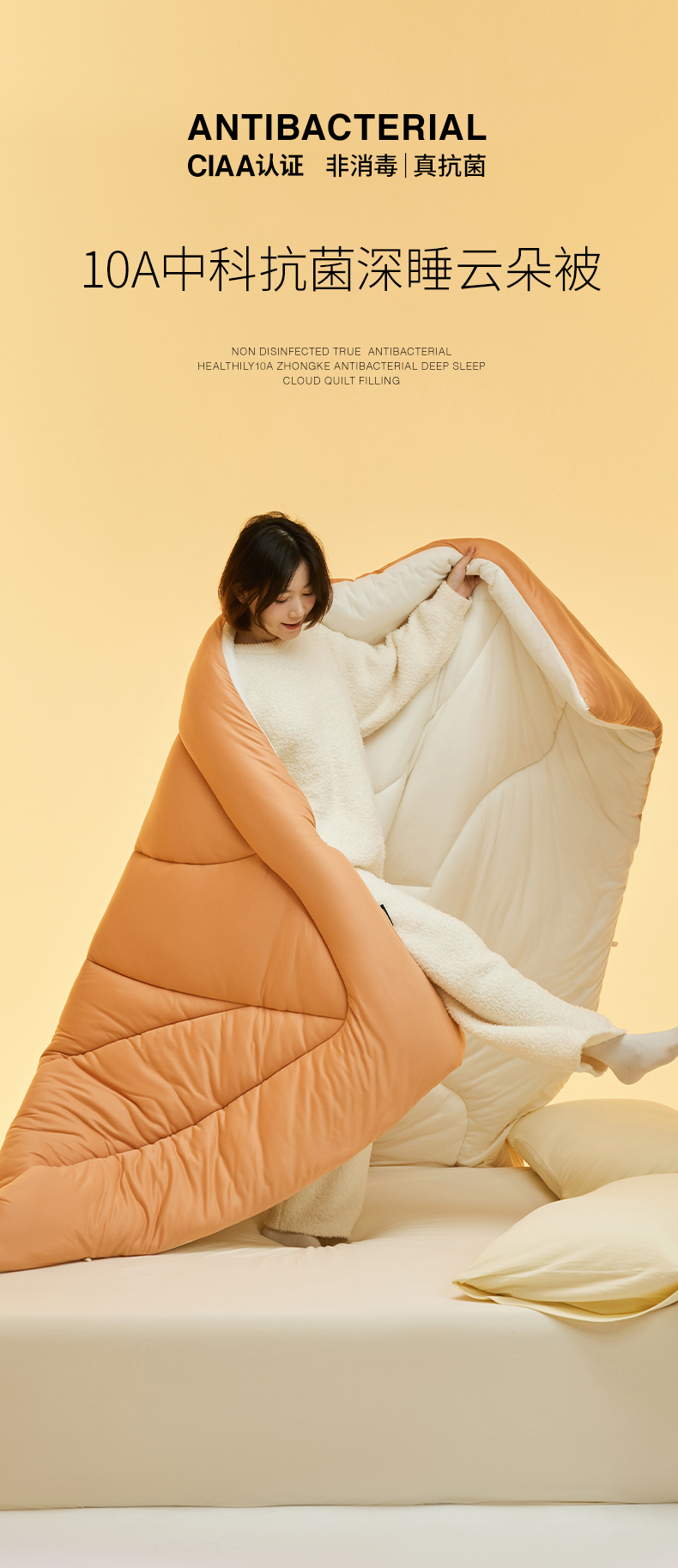 • 91家纺网 家纺一手货源 找家纺 玛德琳 2025新款10A中科抗菌深睡云朵被子被芯-无影图 暖阳橙