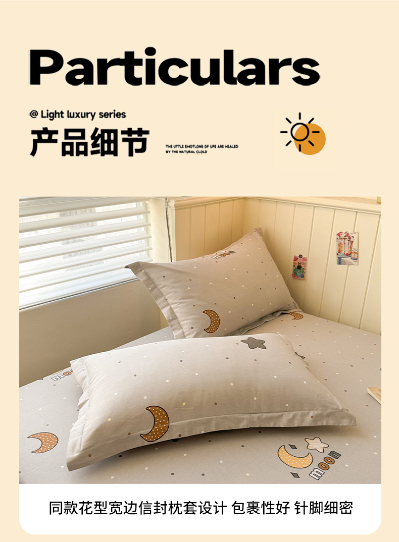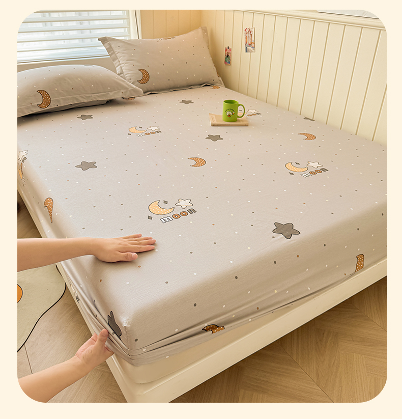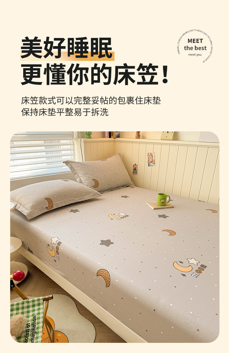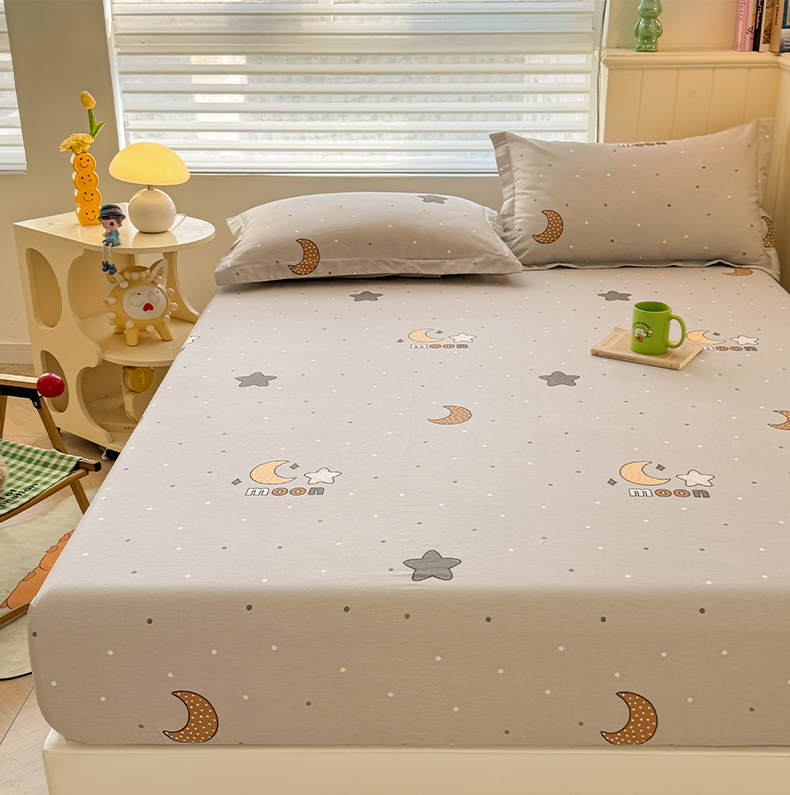 名优家纺 2025新款全棉纯棉12868韩版小清新系列床笠单件--单床笠 月之星-灰