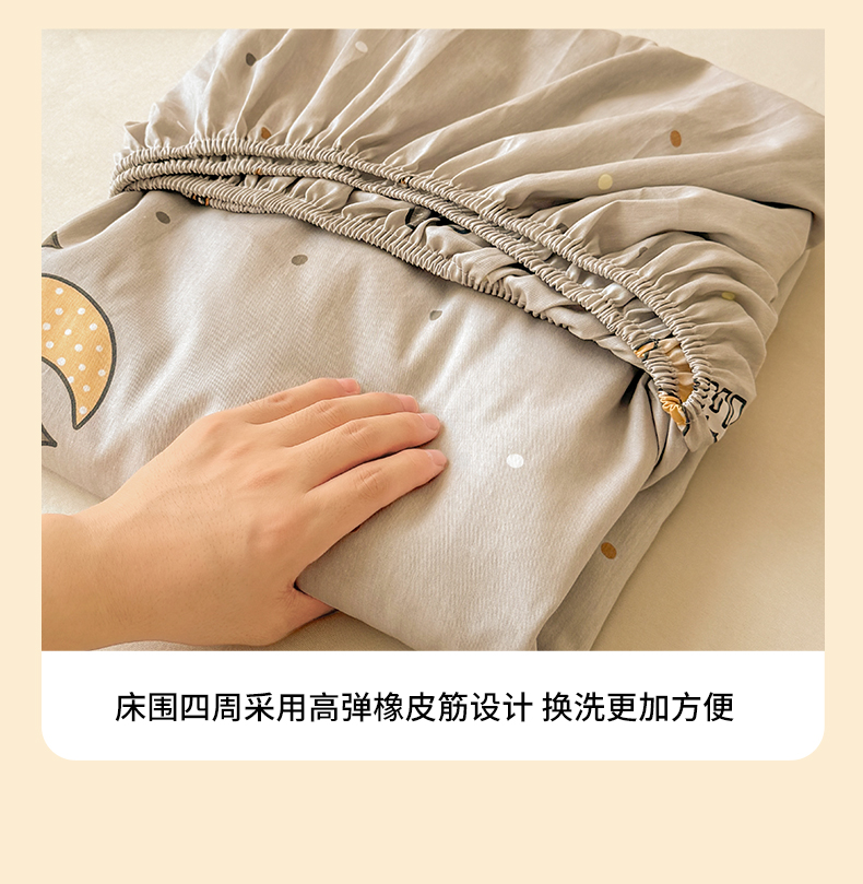 • 91家纺网 家纺一手货源 找家纺 名优家纺 2025新款全棉纯棉12868韩版小清新系列床笠单件--单床笠 月之星-灰