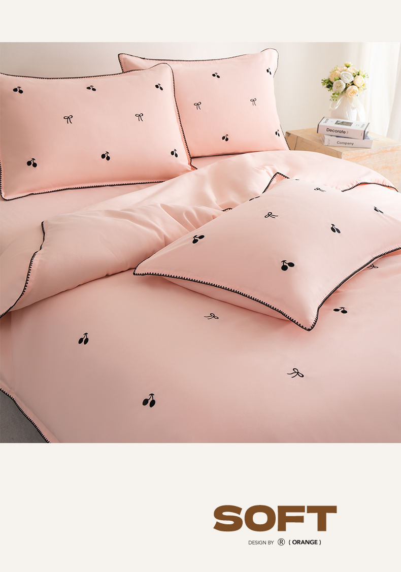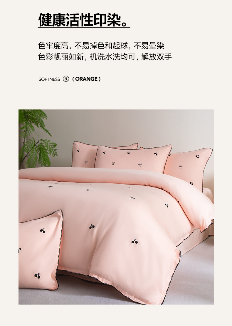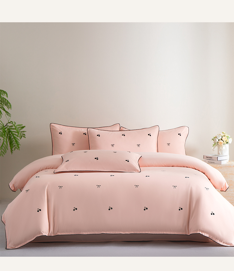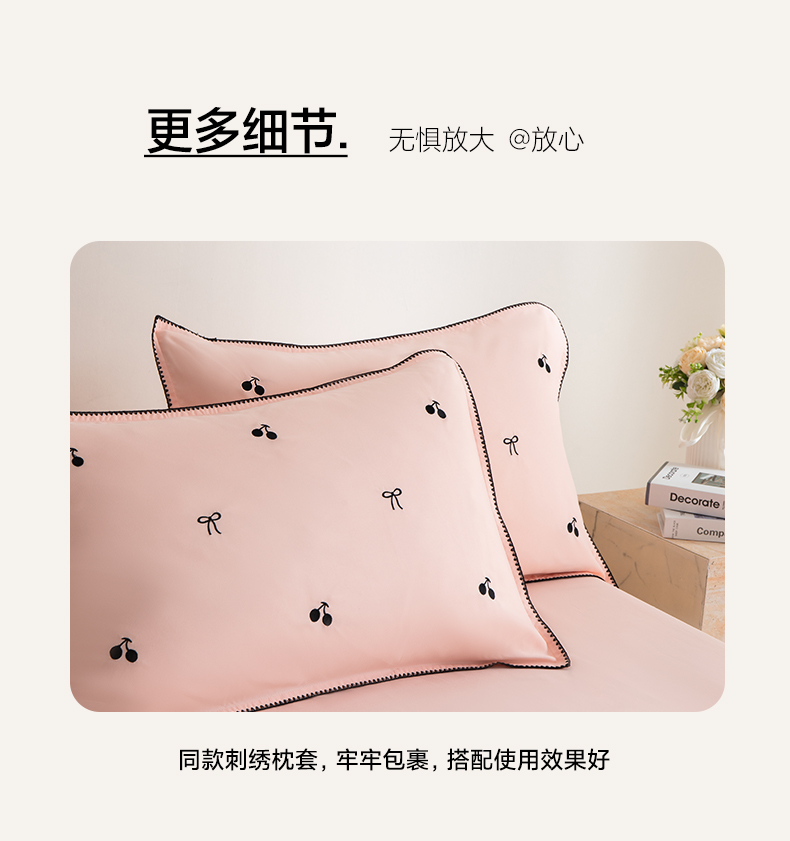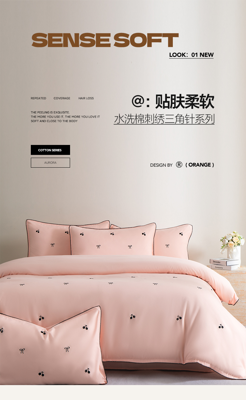 商品名称:花愿(原花纪) 2025新款水洗棉刺绣三角针四件套系列-芭提雅 芭提雅-樱花粉