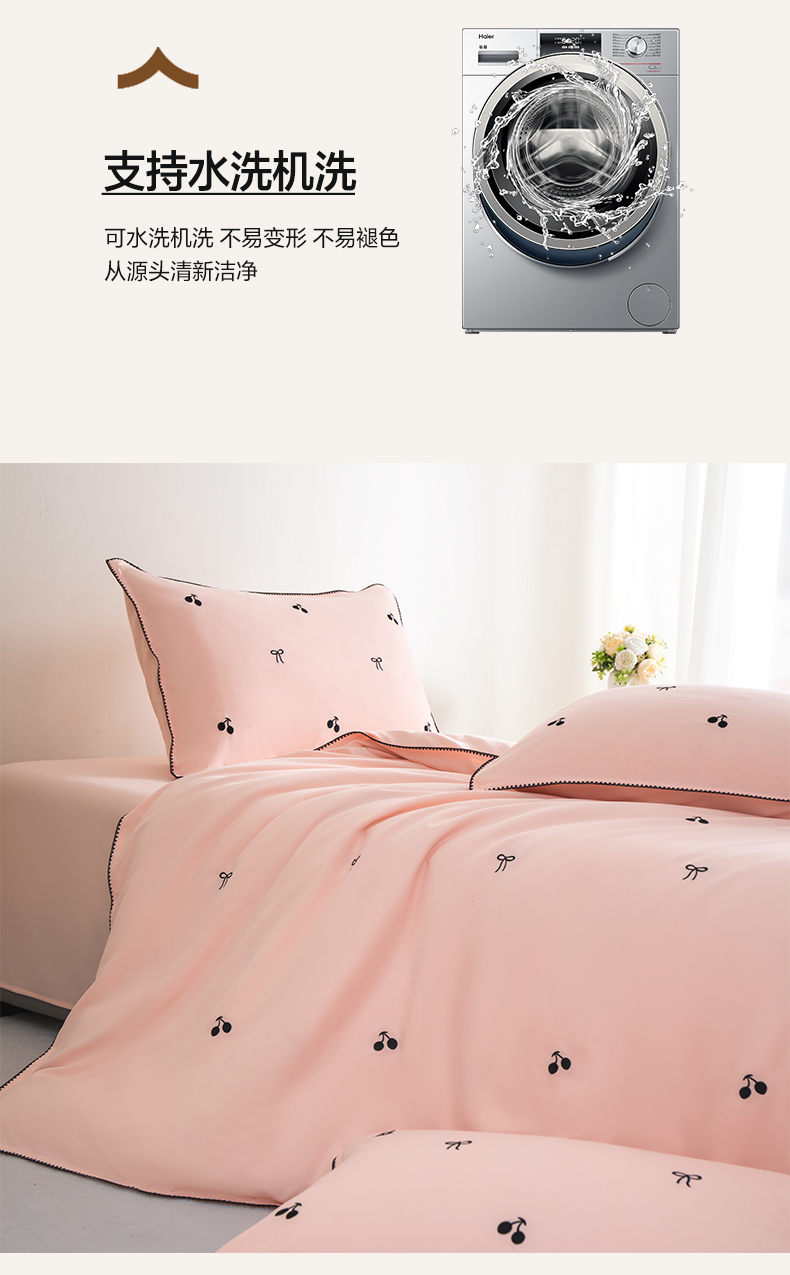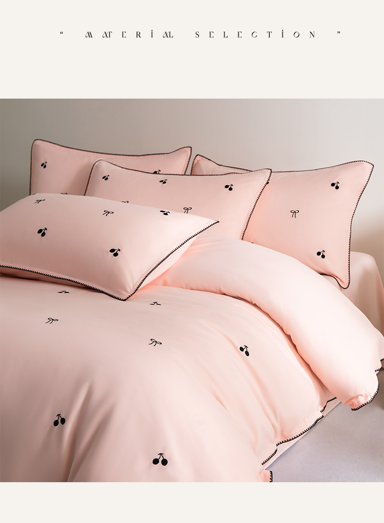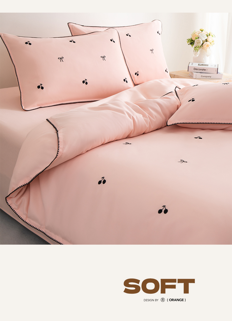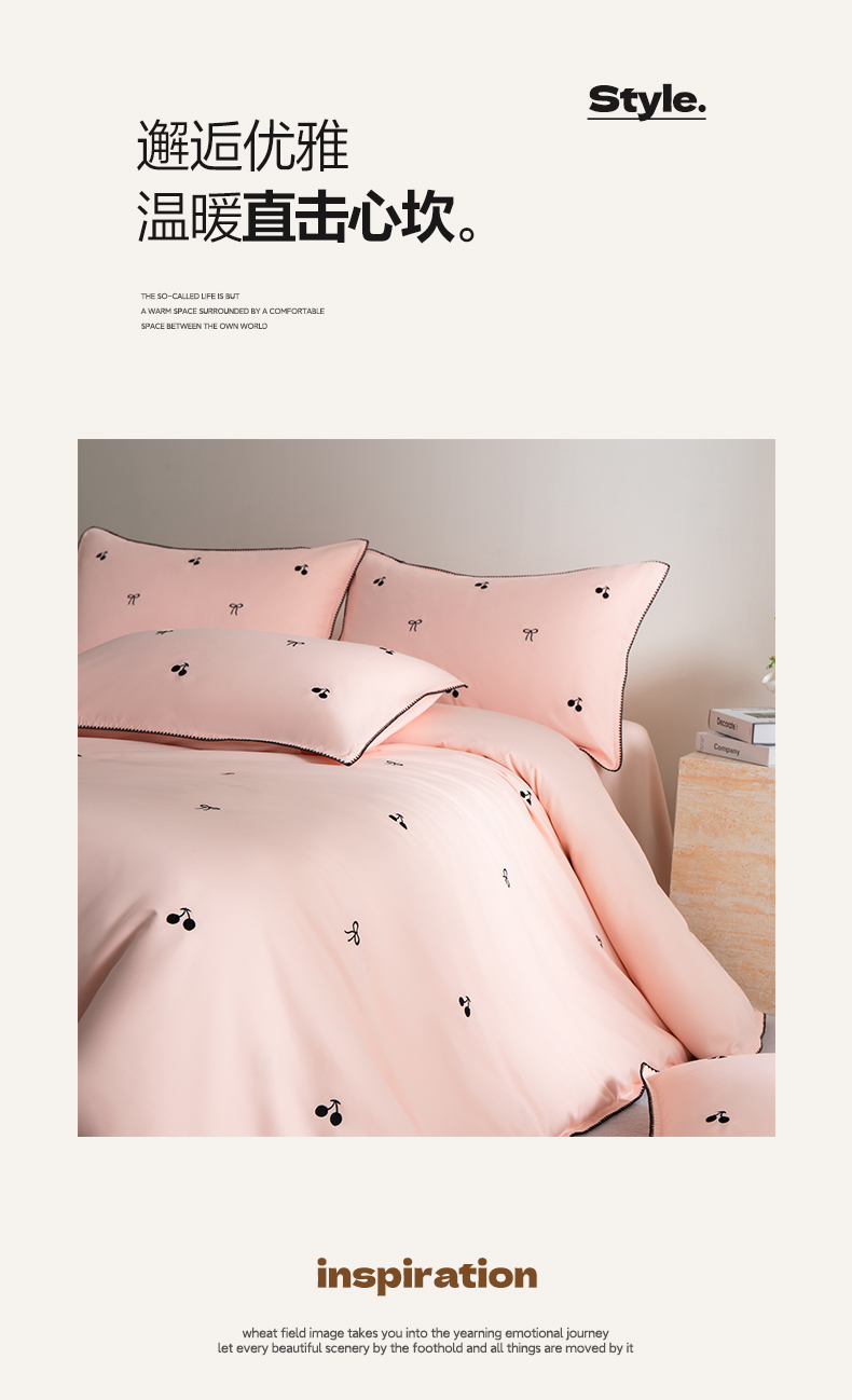商品名称:花愿(原花纪) 2025新款水洗棉刺绣三角针四件套系列-芭提雅 芭提雅-樱花粉