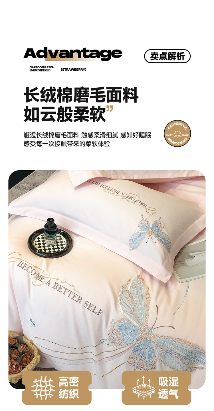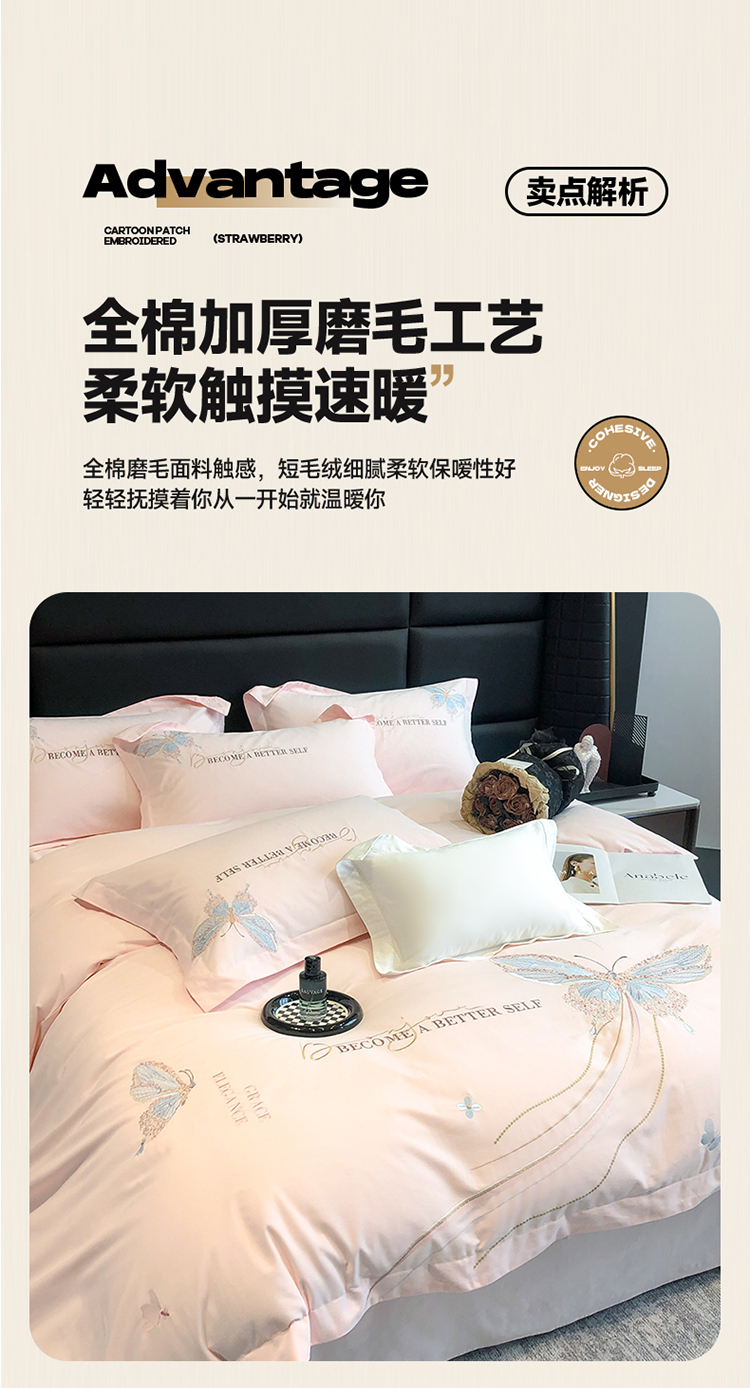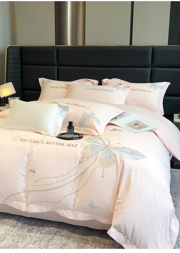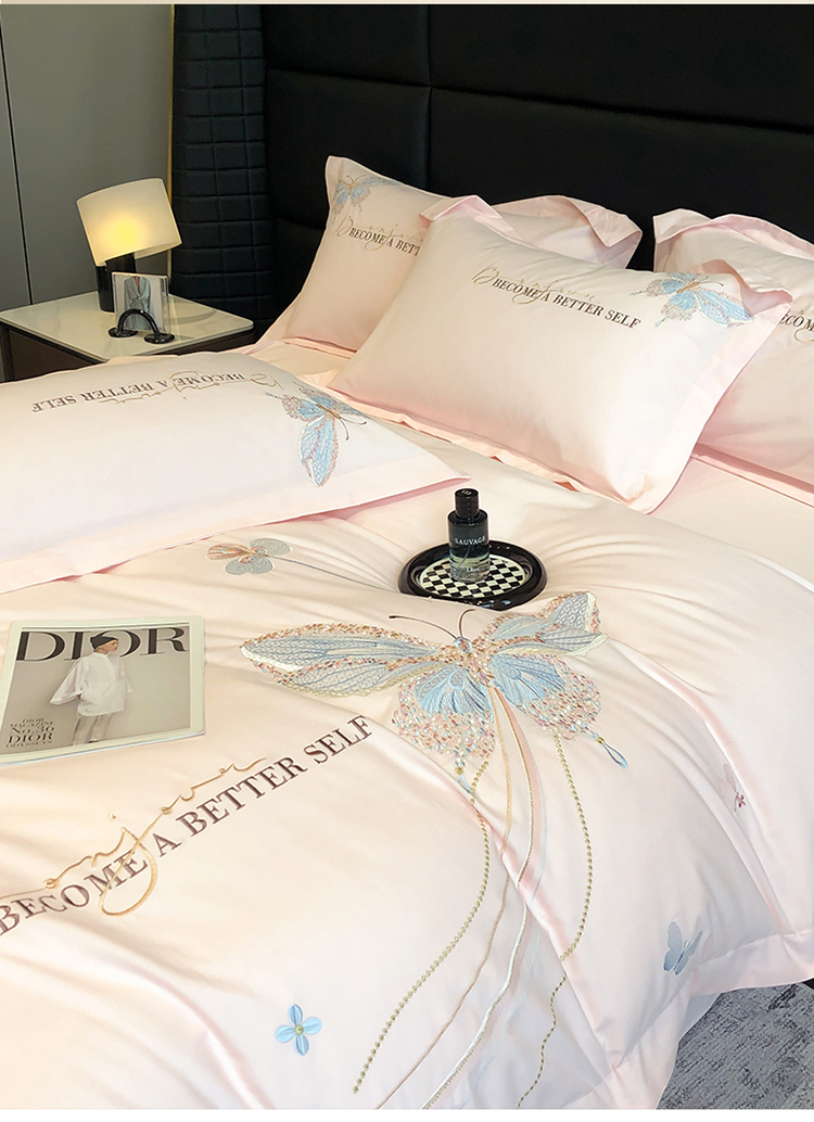 当前位置: 91家纺网 > 商品网购 > 床品套件 > 四件套 > 长绒棉四件套 > 高档礼盒装超细旦超柔长绒棉磨毛刺绣四件套秋冬加厚100%纯棉全棉床品 绮蝶-心动粉-A类超细旦长绒棉磨毛