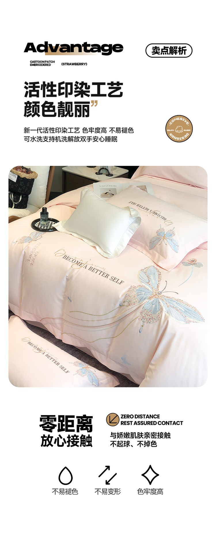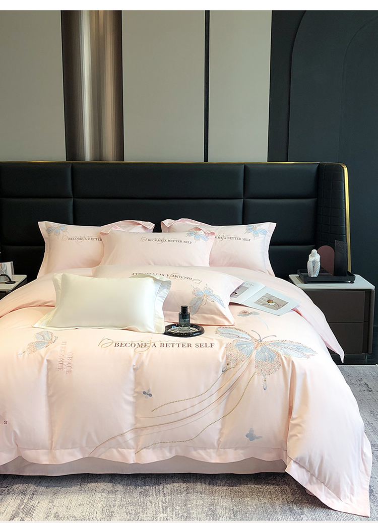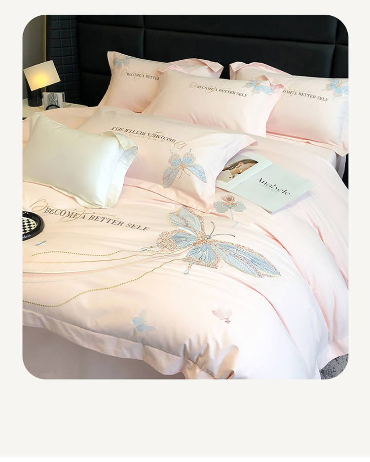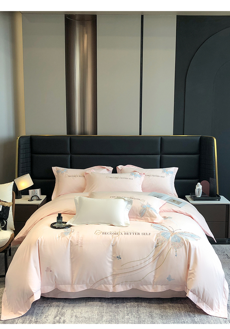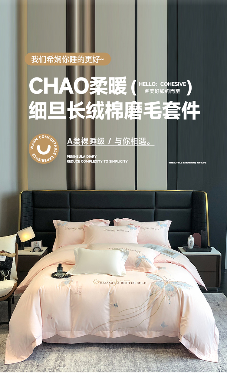 当前位置: 91家纺网 > 商品网购 > 床品套件 > 四件套 > 长绒棉四件套 > 高档礼盒装超细旦超柔长绒棉磨毛刺绣四件套秋冬加厚100%纯棉全棉床品 绮蝶-心动粉-A类超细旦长绒棉磨毛