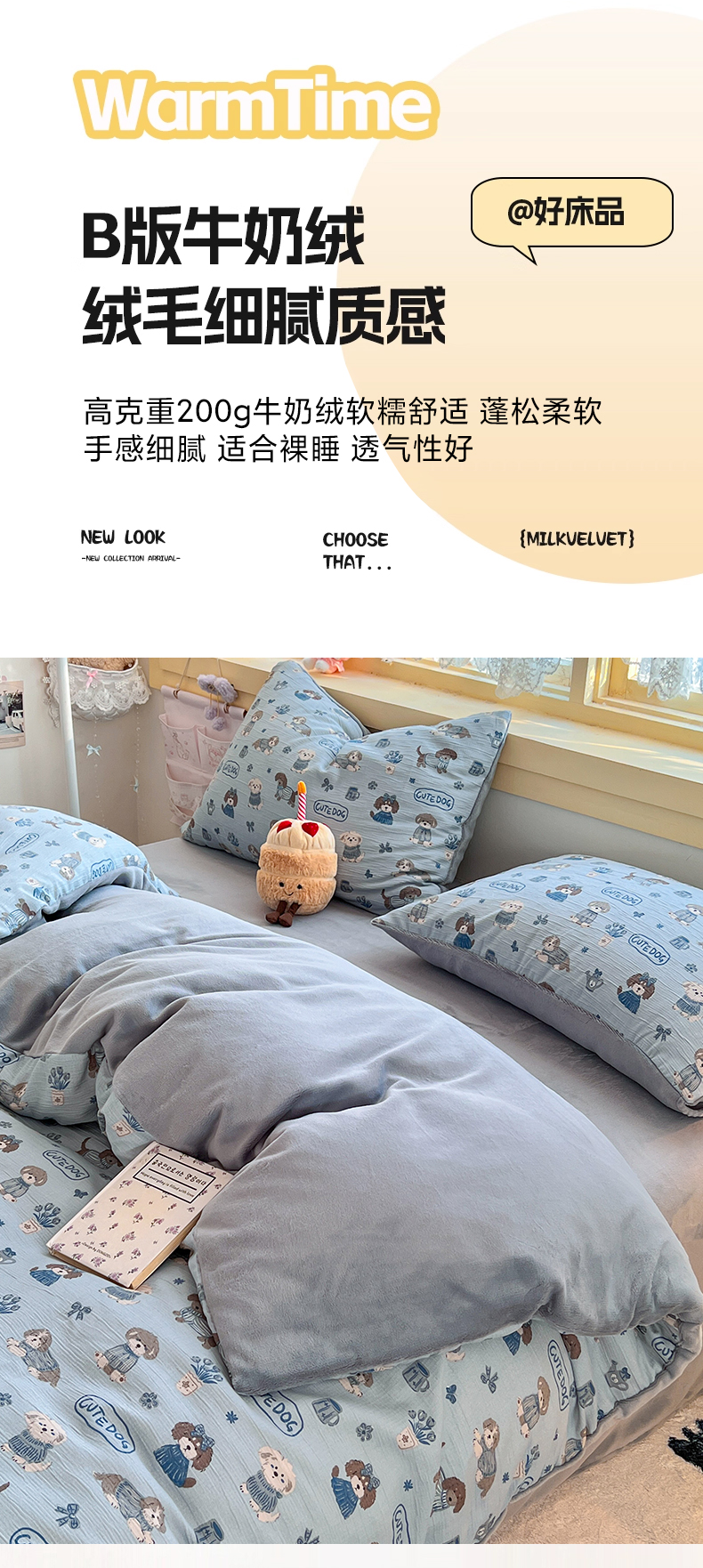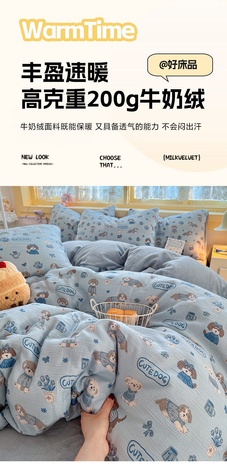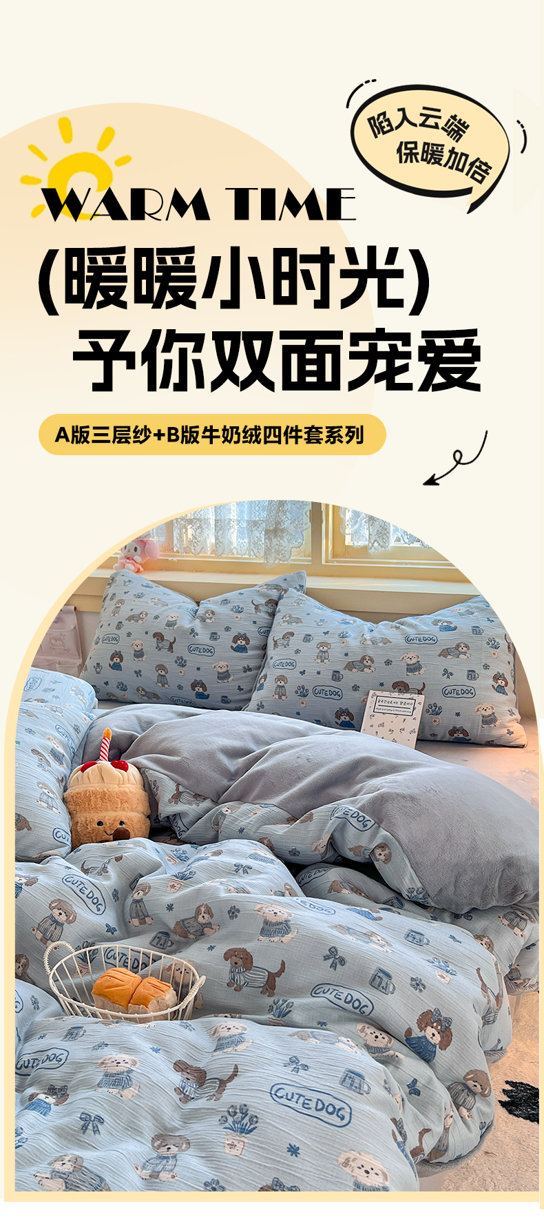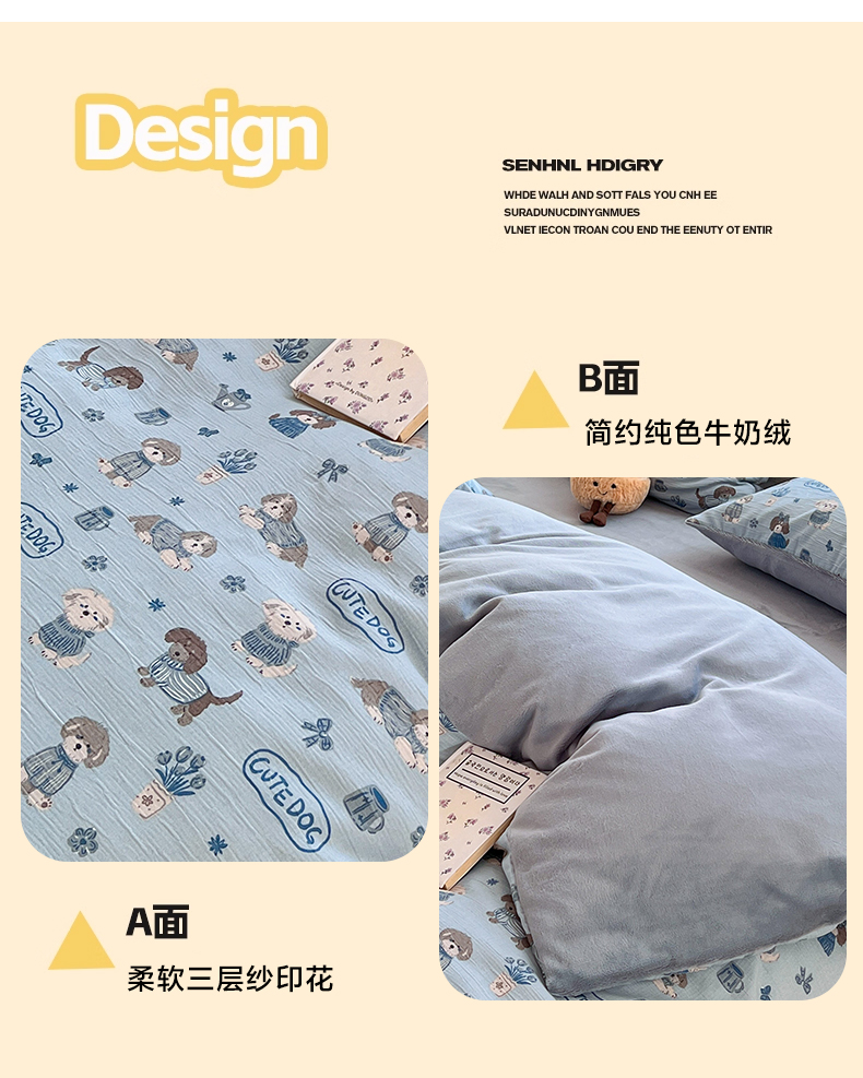 玉海棠家纺 2025新款A版三层纱B版牛奶绒四件套系列 复古修狗
