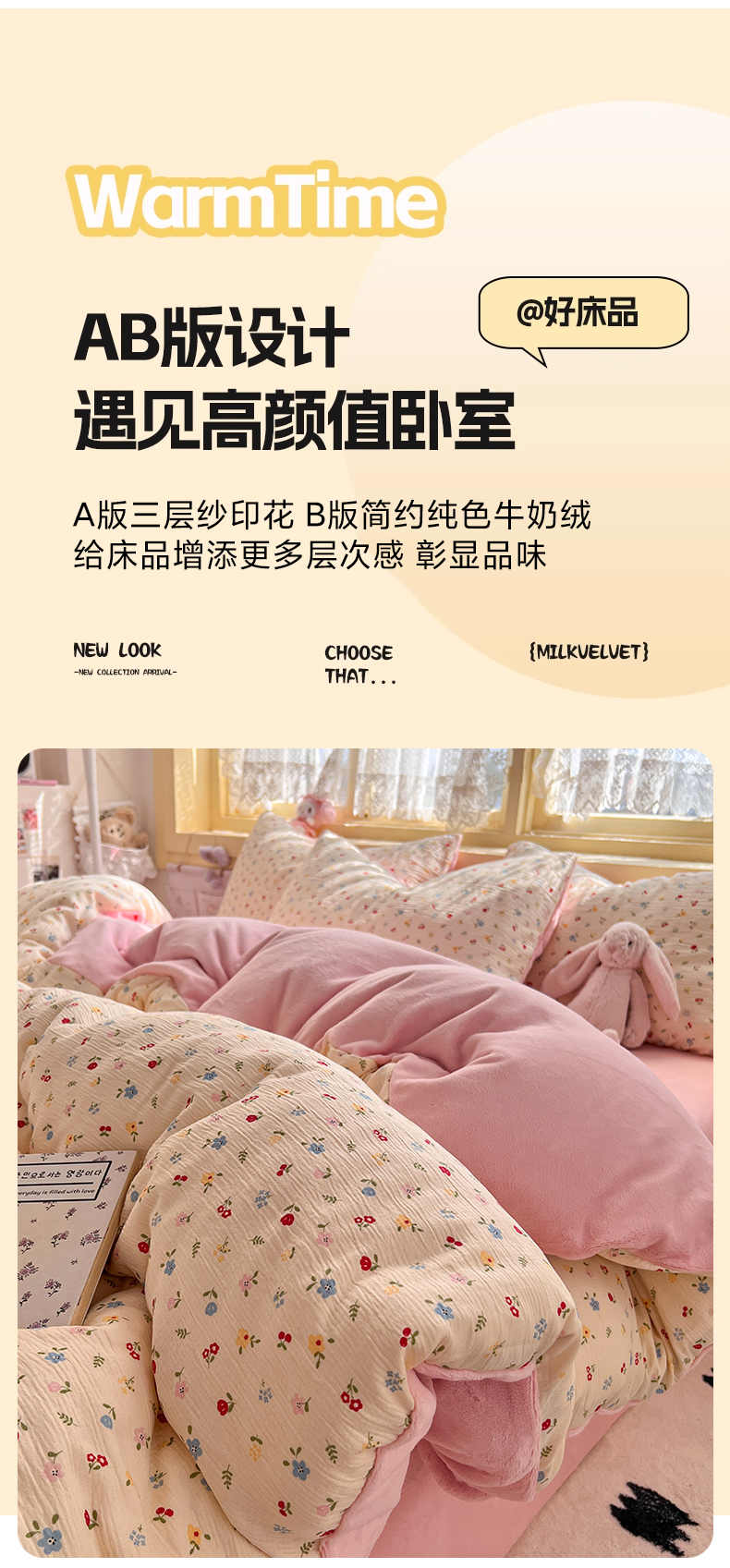 玉海棠家纺 2025新款A版三层纱B版牛奶绒四件套系列 小花点点