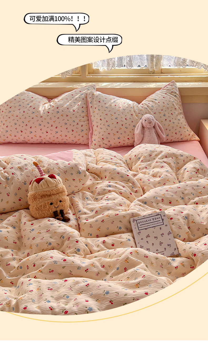 (总)玉海棠家纺 2025新款双层皱皱纱四件套,大脸喵,生日派对,芝士小猫,像素猫咪,点点草莓,夕颜,甜品猫,可爱喵星球,动物王国,焦糖樱桃,奶芙芙,青苹果乐园,星光草莓猫,炫彩独角兽,彼岸花,春风里,蛋糕小猫,动物狂欢会米,凯蒂猫,萌物家族,晴天,小确幸,芝士奶酪,蓝汐