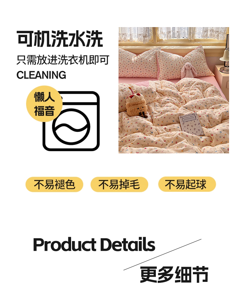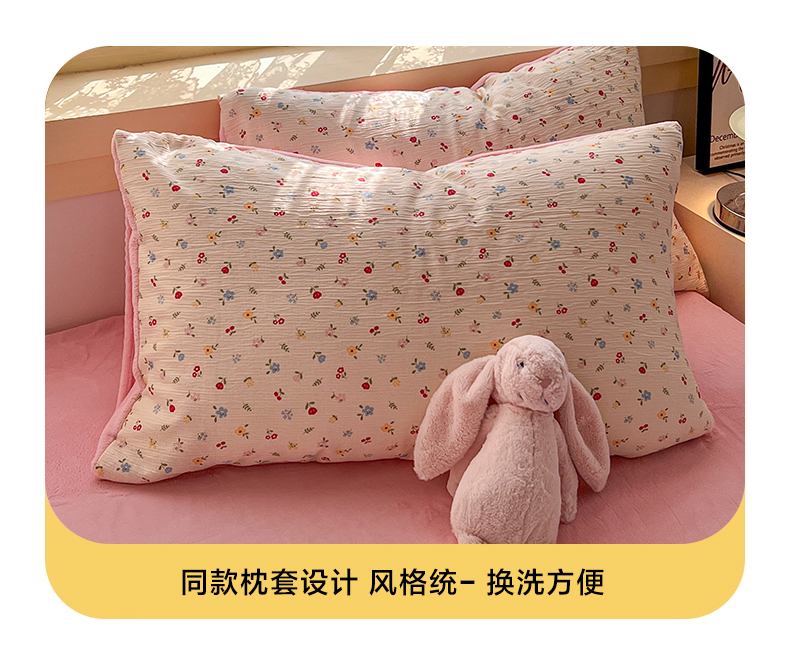 商品名称:玉海棠家纺 2025新款A版三层纱B版牛奶绒四件套系列 小花点点